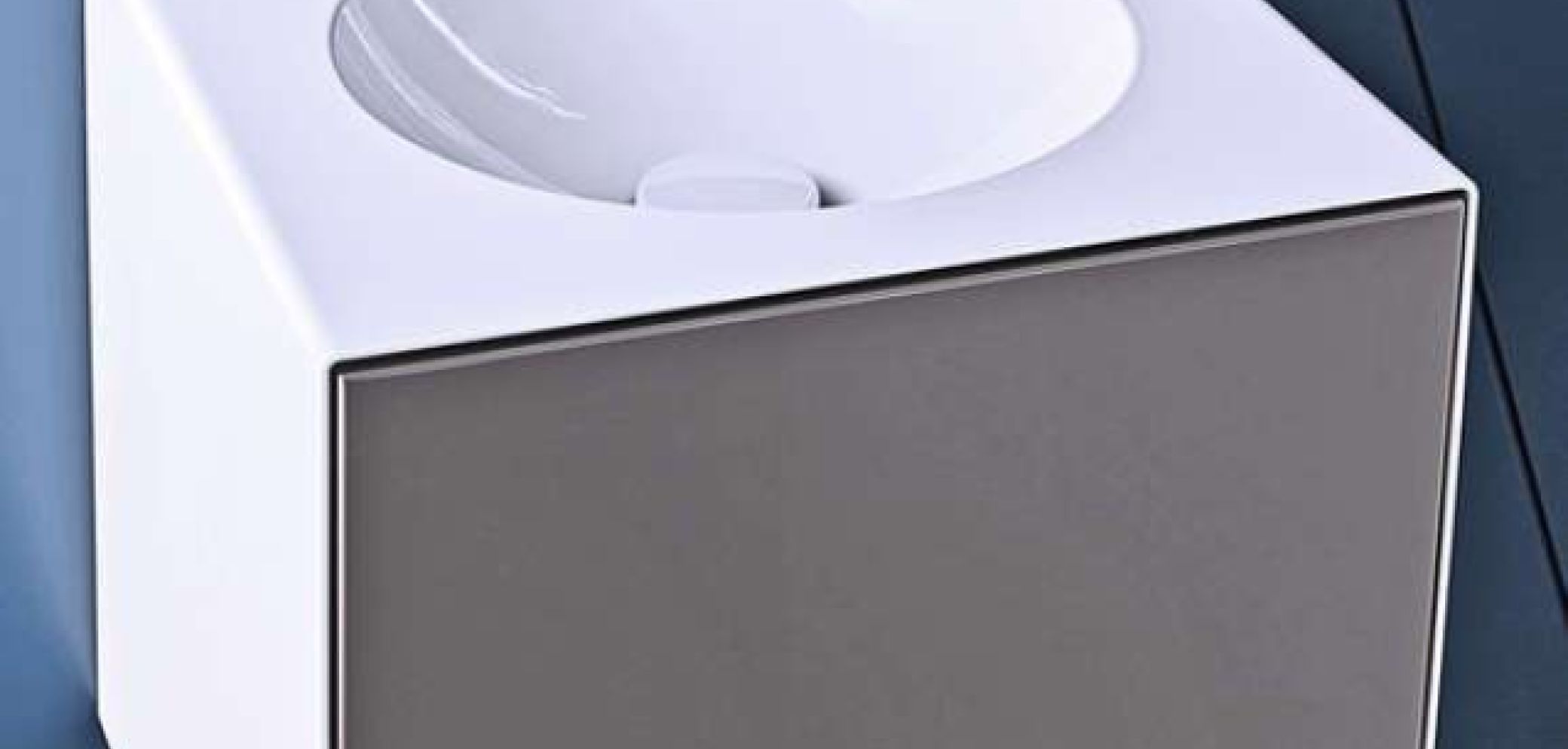 Dank eines dafür neu entwickelten Verfahrens konnten die Möglichkeiten des Materials noch mehr ausgereizt werden. Es bietet jetzt auch Lösungen für Kleinst- und Gästebäder. Auffällig ist die markante Form als gleichschenkliger Würfel mit der kreisrunden Mulde – im Gegensatz zur Hauptbadlösung. Das Produkt wird als rechteckiger Waschplatz mit oder ohne Hahnloch in den Massen 381 × 363 mm und einer Höhe von 361 mm angeboten. Die Beckenmulde ist mittig platziert und verfügt über ein Schaftventil mit weiss glasierter Abdeckhaube.