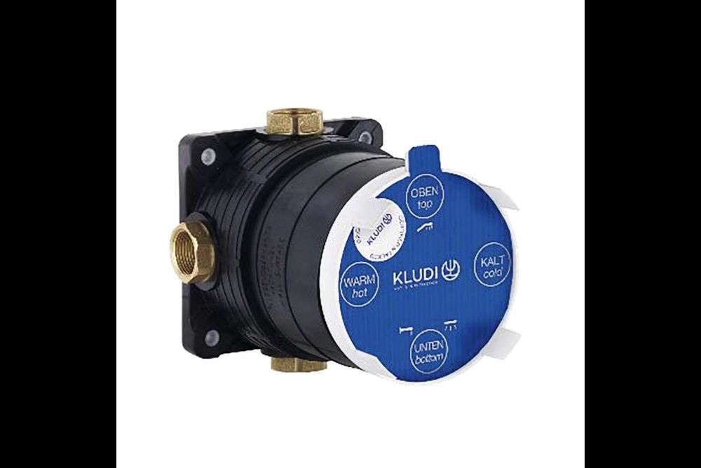 Die «Flexx.Boxx» von Kludi ist das flexibel einsetzbare Unterputz-Rohbau-Set für alle Anwendungen. Um die Arbeit mit der «Flexx.Boxx» noch einfacher zu machen, hat die Firma die Universal-Unterputzbox überarbeitet. Dafür haben die Ingenieure des Unternehmens die Arbeitsabläufe beim Installieren analysiert, um die Box so zu optimieren, dass sie noch schneller, einfacher und sicherer montiert werden kann. Zur Sicherheit bei der Montage trägt bei, dass der Prüf- und Spülblock mit zwei Pfeilen gekennzeichnet ist, welche die Spülrichtungen eindeutig vorgeben. Er wurde zudem so konstruiert, dass ein Querfluss zwischen Kalt- und Warmwasser nicht mehr möglich ist. Neu ist auch, dass das Spülset über eine eindeutige und einfache Führung verfügt, sodass es besonders leicht durch das Stützrohr aufgesetzt werden kann.