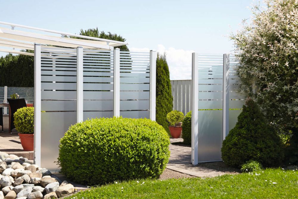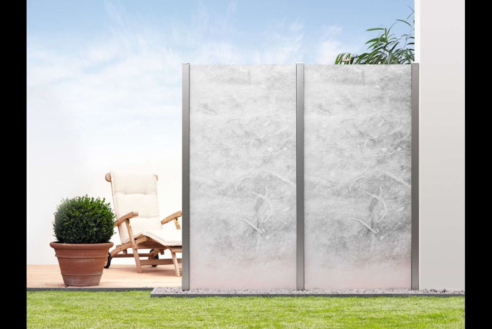 Sichtschutze aus Glas bieten die Möglichkeit, sehr leicht wirkende und transparente Zäune zu kreieren. Das Glas ist einfach zu reinigen und äusserst beständig. Je nach Anbieter können die Gläser mit Wunschmotiven oder Mustern bedruckt werden.