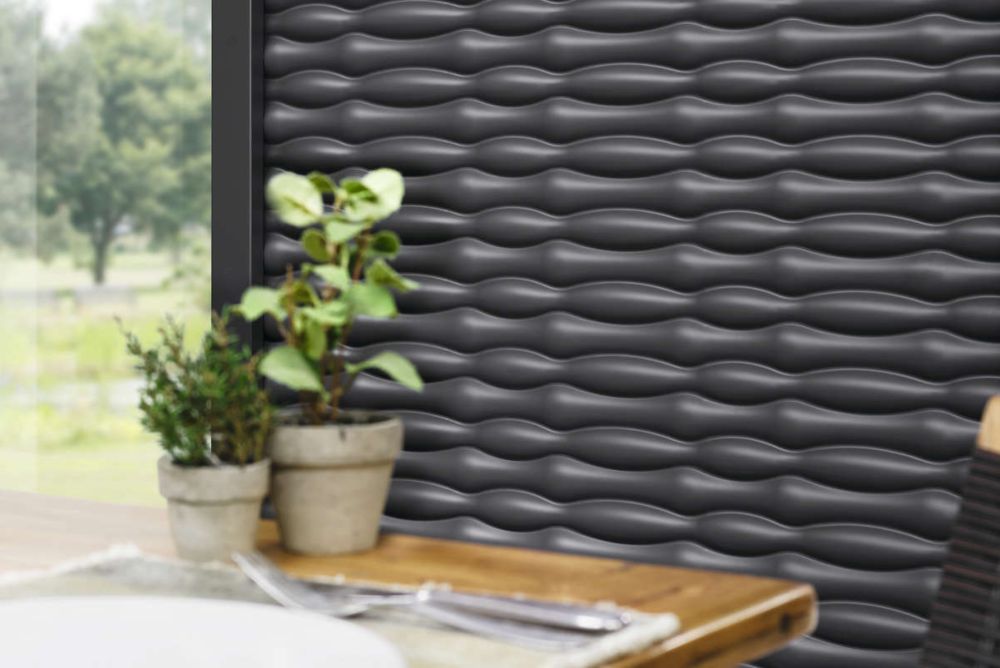 www.tomwood.chDes Zaunelement «Flow» lässt sich mit unterschiedlichen Basispfosten einsetzen. Dadurch ist es mit anderen Einsätzen kombinierbar. Das Element besteht aus gelochtem oder ungelochtem Aluminium, das in eine Wellenform gepresst wurde. Die Elemente sind in Silber oder Anthrazit erhältlich. Die 1800 mm hohen Elemente können in den Breiten 1200 und 600 mm bestellt werden. Da die Teile aus Aluminium bestehen, können sie jedoch bei Bedarf ohne grössere Probleme angepasst werden.