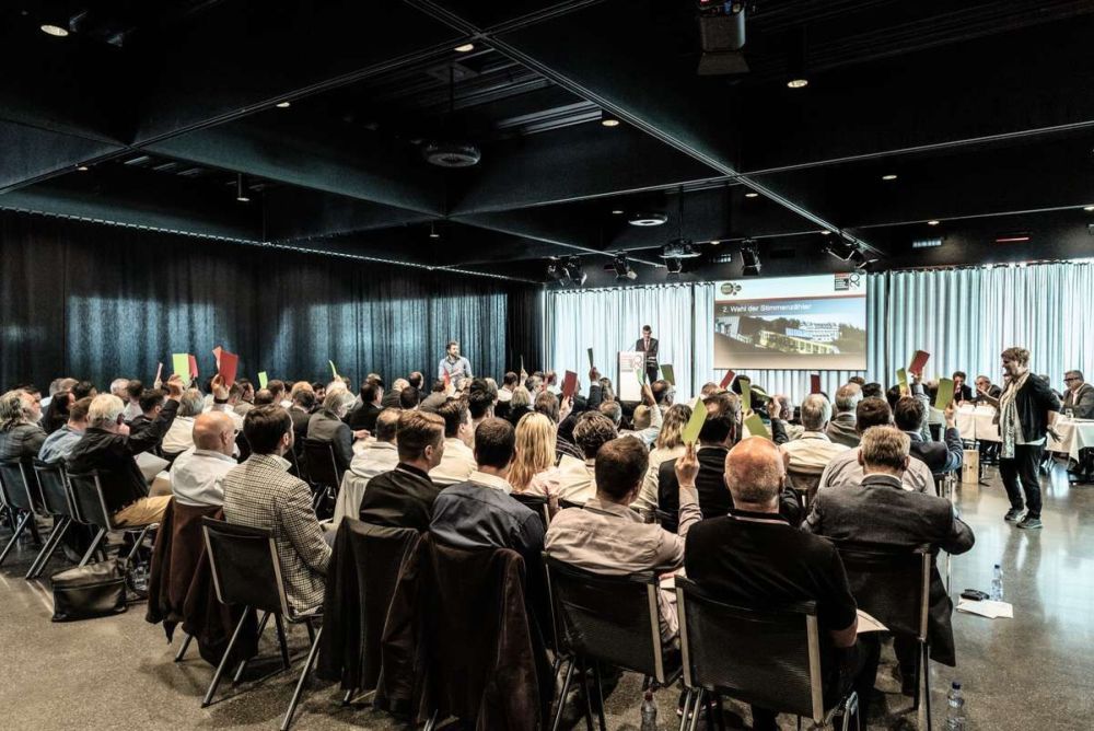 Rainer Klein verlas den Geschäftsbericht des vergangenen Jahres. Die 53 Wahlberechtigten bestätigten Erfolgsrechnung, Budget und Wiederwahl der Vorstandsmitglieder einstimmig. In den Applaus stimmten auch die weiteren 40 Teilnehmer ein.
