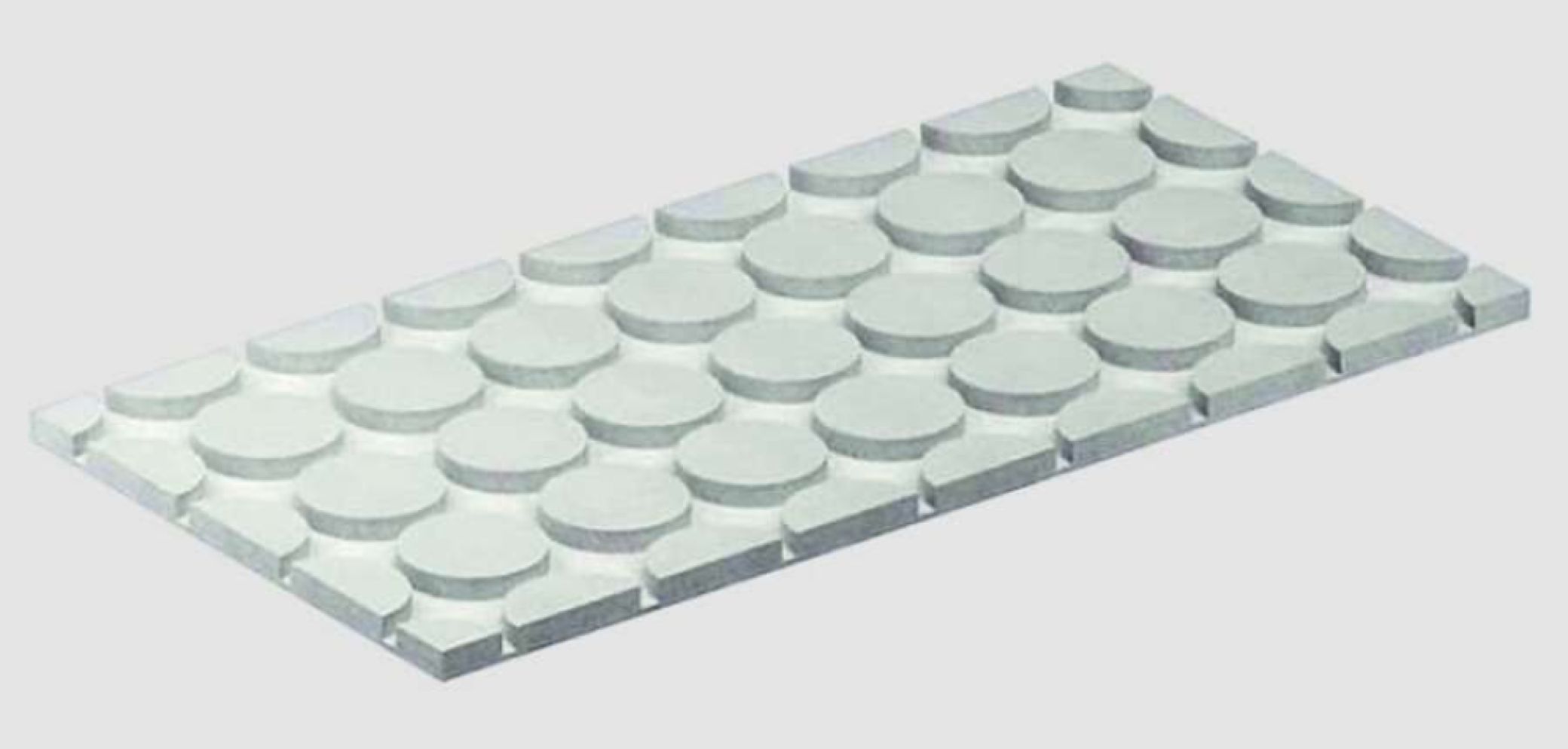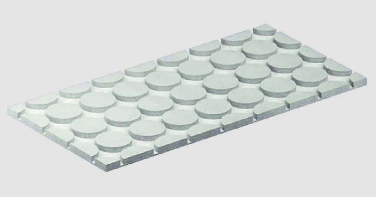 Neu im Angebot der Herzog-Elmiger AG findet sich die Fussbodenheizelemente Therm25-125 von Fermacell. Die Elemente für Fussbodenheizsysteme weisen mit ihren 125 mm einen geringeren Rohrabstand auf als die Fermacell-Therm25-Elemente. Die beiden unterschiedlichen Elemente lassen sich aufgrund derselben Rohrdurchmesser bestens kombinieren, so kann in kleinflächigen Räumen und höherem Wärmebedarf, wie z. B. Nasszellen, das Fermacell Therm25-125 verlegt werden, während in anderen Räumen das bisherige Fermacell Therm25, mit einem Rohrabstand von 167 mm eingesetzt werden kann. Erhältlich ist von der Ausführung mit 125 mm neben der Standard-Platte auch eine Version Fermacell Therm25-125 rund (siehe Bild). Dies ist ein ergänzendes Element bei speziellen Grundrissen, Türdurchgängen, bei der Zusammenführung von Rohren und im Bereich des Heizverteilers.