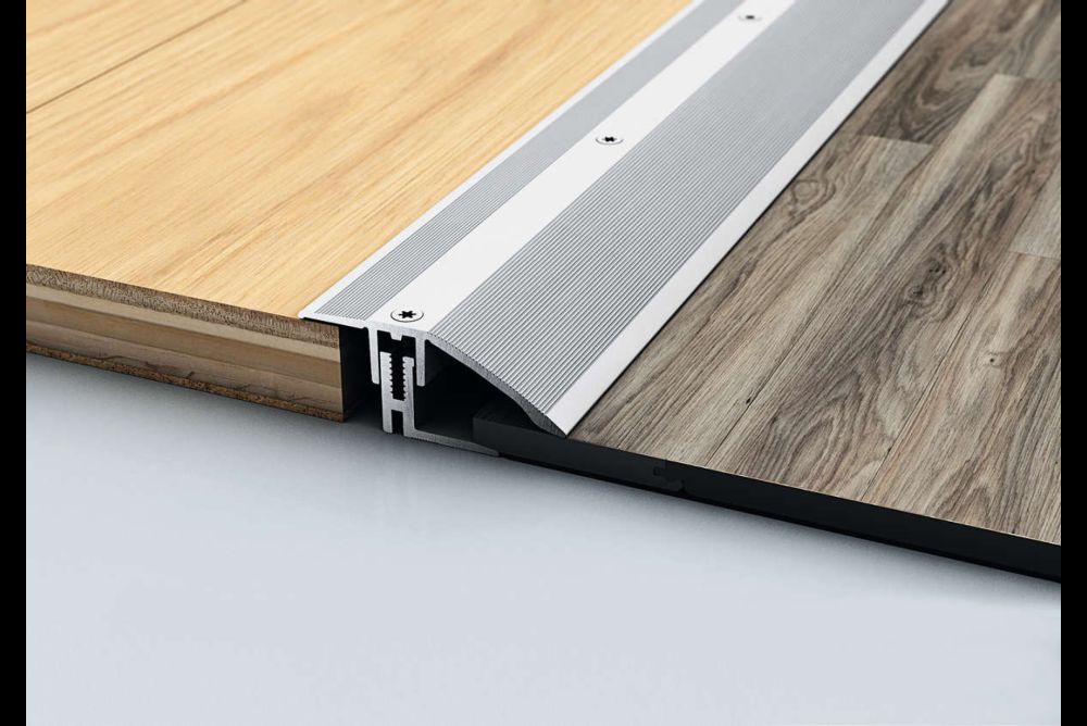 Das mehrteilige Übergangs- und Bewegungsprofil «LPS 220» der Schadegg AG funktioniert je nach Basisprofil bei Belägen bis 21 Millimeter Stärke. Bild: Schadegg AG