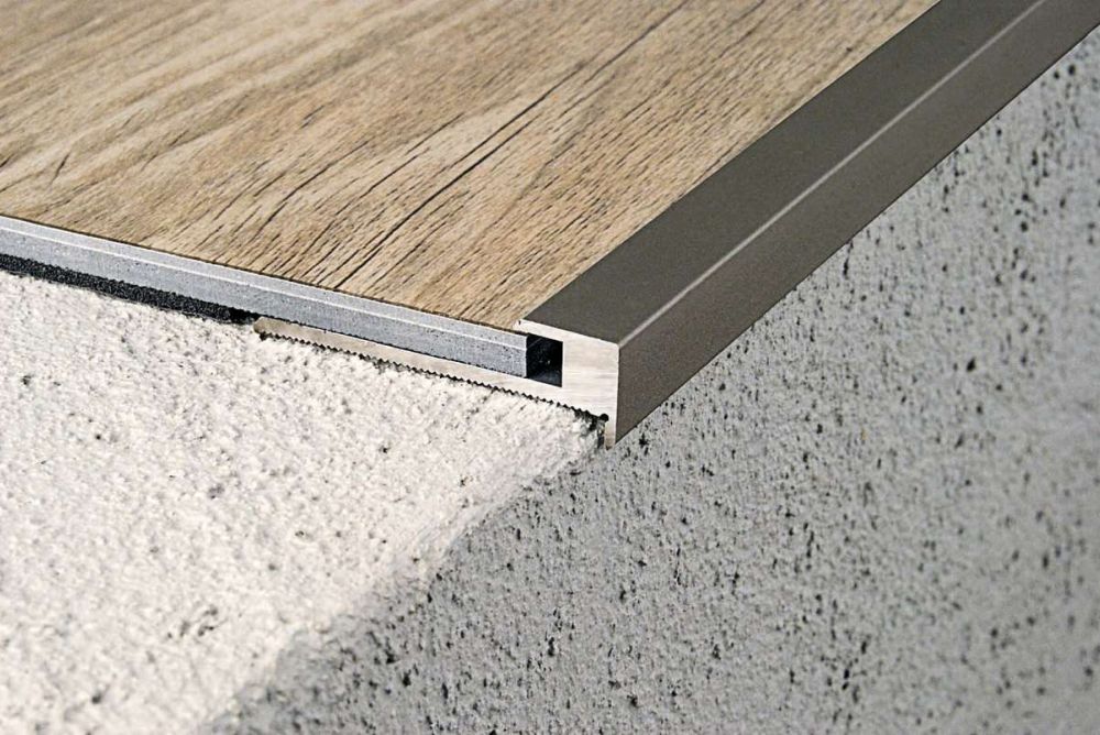 Treppenprofile sind speziell für den Einsatz an der Treppenkante konzipiert. Mit ihnen besteht die Möglichkeit, zwei Beläge über eine Ecke zu verbinden.