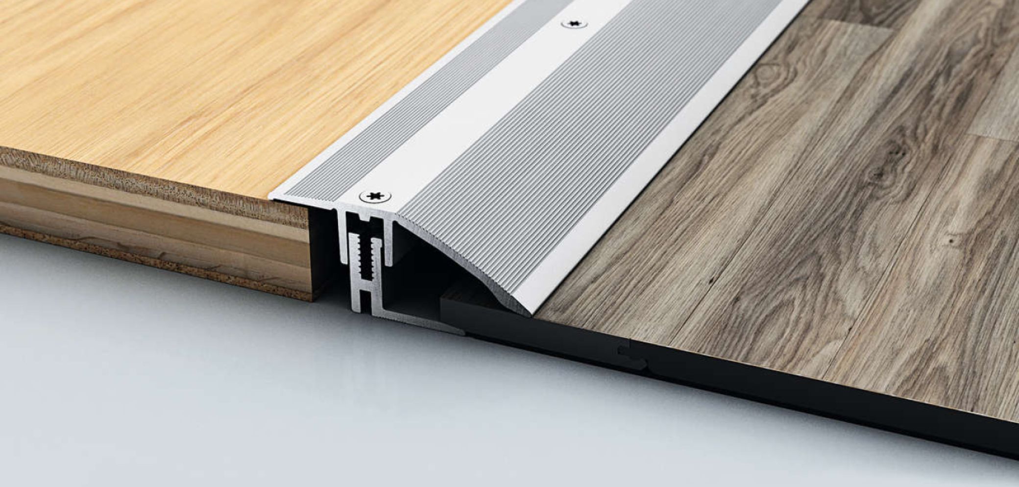 Das Übergangsprofil dient als Verbindung zweier Bodenbeläge. Oftmals handelt es sich um zwei verschiedene Belagsarten mit unterschiedlichen Dicken, weshalb Übergangsprofile meist in der Höhe flexibel ausgeführt sind.