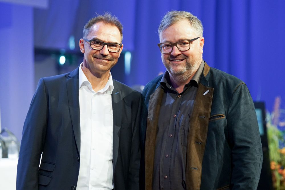 Der ehemalige Präsident Hans Rupli (links) und der amtierende Präsident Hansjörg Steiner.Bild: Holzbau Schweiz