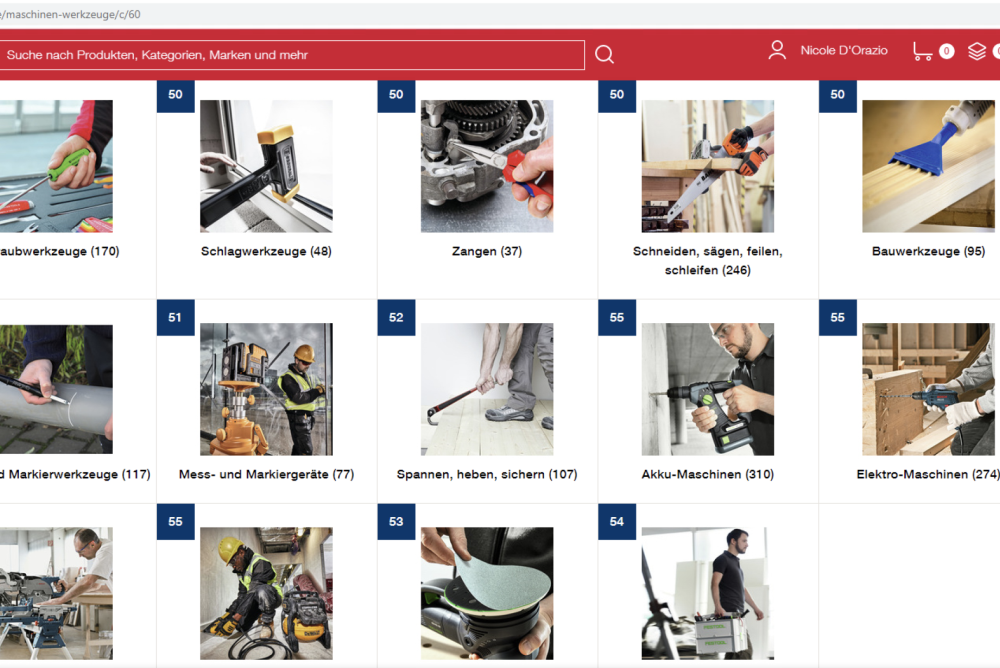Der Online-Shop der Koch Group AG empfängt die Kundin oder den Kunden mit einer übersichtlichen Startseite. Das Unternehmen mit Hauptsitz in Wallisellen ZH ist auf den Vertrieb von technischen- und chemischen Produkten für die Bauwirtschaft und der Ausrüstung von Türen mit Verschluss- und Rettungswegtechnik sowie Zutrittskontrollen spezialisiert. Demenstprechend bietet der Shop über 65'000 Artikel bestehend aus Beschlägen, Werkzeugen, Maschinen und weiteren Produkten von bekannten Herstellern und Marken an.