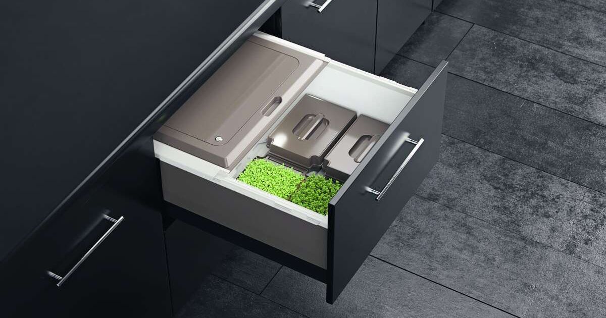 Viele Menschen leben in Städten, haben deshalb keinen Garten und trotzdem den Wunsch, das eigene Gemüse anzubauen. Das Grün sucht sich so neue Wege auch in der Stadt. «Urban Gardening» heisst ein Trend, auch «Vertical Farming», wenn die Pflanzenkübel sich zum Hochhaus auftürmen und natürlich die Wachstumsschränke in der Küche, Letzteres meist ohne Erde, aber in der Schublade – auch das scheint zu gehen. Und nein, es schimmelt wohl nicht, der Feuchtigkeitshaushalt sei stets perfekt eingestellt, versichert Sven Burgstaller, Key-Account Manager bei Hailo. Dafür sorgen die Wachstumspads, die mit dem Saatgut bestückt sind, darunter ein Vlies, das mit der Wasserschale Kontakt hat. Den Rest besorgt die Kapillarkraft. Erde gibt es nicht und dementsprechend sind es die jungen Sprossen von Pflanzen, die schon nach wenigen Tagen geerntet werden können. Anfänglich mit Deckel, dann werden die bis zu vier verschiedenen Schalen mit einer Pflanzenwachstumslampe abgedeckt und belichtet. Je zwei Schalen können unterschiedliches Licht erhalten und auch die Belüftung folgt dem Programm der App oder auch offline. Das Ganze kann ab Anfang nächsten Jahres in Schubladen von 600 mm Breite eingesetzt werden. Passende Saatgut-Pads gibt es ebenfalls von Hailo.