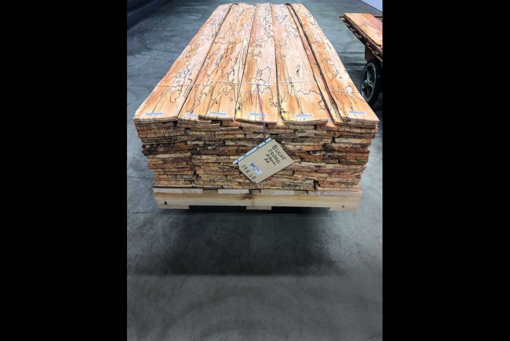 Für die Pilzmodifikation eigen sich neben der Buche auch Ahorn, Pappel oder Kirsche. Buche hat hier ganz klar den Vorteil, dass das Holz im Vergleich günstig und gut verfügbar ist. «Da die Ausbeute sehr gering ausfällt, ist das Risiko bei teuren Holzarten oftmals zu hoch. Zudem kann das Ergebnis nicht vorgegeben werden. «Da es sich um einen natürlichen Zersetzungsprozess handelt, bekommt jeder Stamm ein einzigartiges Erscheinungsbild», sagt Fiedler. Deshalb ist es nicht möglich, die Optik von pilzmodifiziertem Holz genau zu beschreiben oder einzuordnen. «Es gibt Stämme, die erhalten eine surreale Farbgebung, andere eine Musterung durch die Demarkationslinien oder einen sonstigen Ausdruck.»