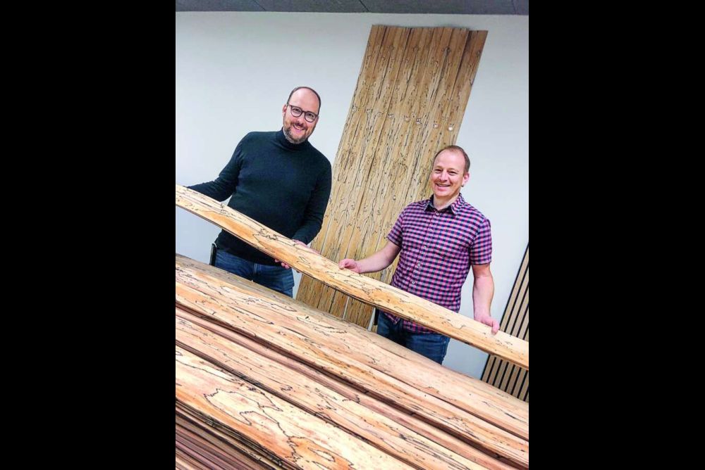 Da es sich bei pilzmodifiziertem Furnier nicht um Standardware handelt, lohnt es sich, frühzeitig mit einem Furnierhändler in Kontakt zu treten, «Wir haben zurzeit zirka 1000 Quadratmeter an Lager», sagt Markus Barmettler, Geschäftsführer der Bollinger Furniere AG in Nürensdorf ZH. Für besondere Blickfänge oder Designakzente in einem Kundenauftrag reicht zudem meist weniger Furniermenge aus, was die Beschaffung von Furnier mit einheitlichem Erscheinungsbild vereinfacht. Neben dem Furnierbereich kommen pilzmodifizierte Hölzer auch oftmals als Massivholz im Bereich der Musikinstrumente, beispielsweise im Gitarrenbau, zum Einsatz.