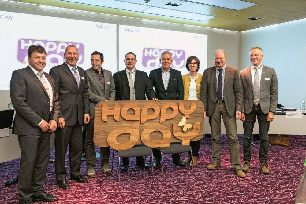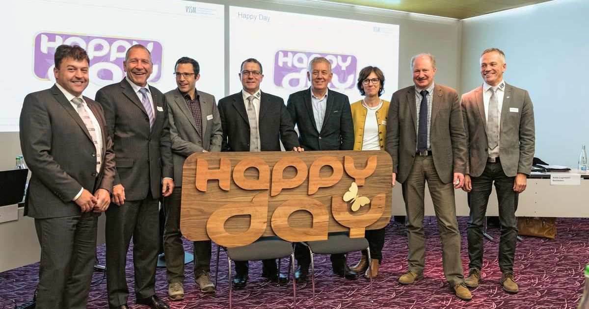 VSSM. Die Präsidenten der VSSM-Sektionen und -Fachgruppen staunten nicht schlecht, als nationale TV-Prominenz an ihrer Konferenz auftauchte. SRF-Moderator Röbi Koller übermittelte mit einem hölzernen Geschenk ein Dankeschön für die langjährige Happy-Day-Partnerschaft.