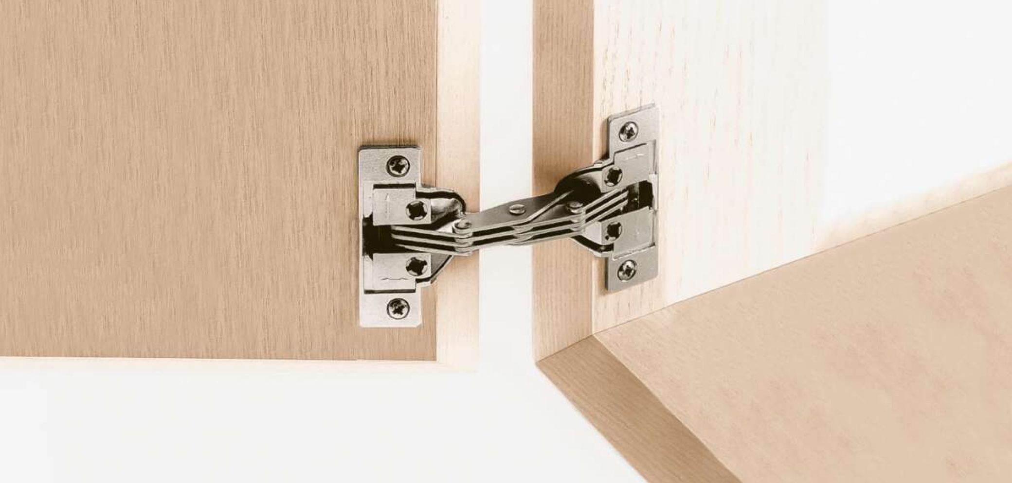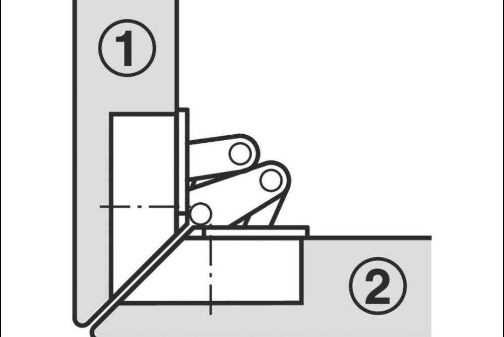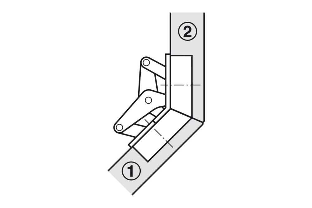 Das Gehrungsscharnier «GS 45» von Häfele eignet sich für Möbelkonstruktionen mit Gehrung an der Front- und Korpuskante. Das Scharnier ermöglicht einen Öffnungswinkel von 135° und ist bei geschlossener Tür von aussen nicht zu sehen.