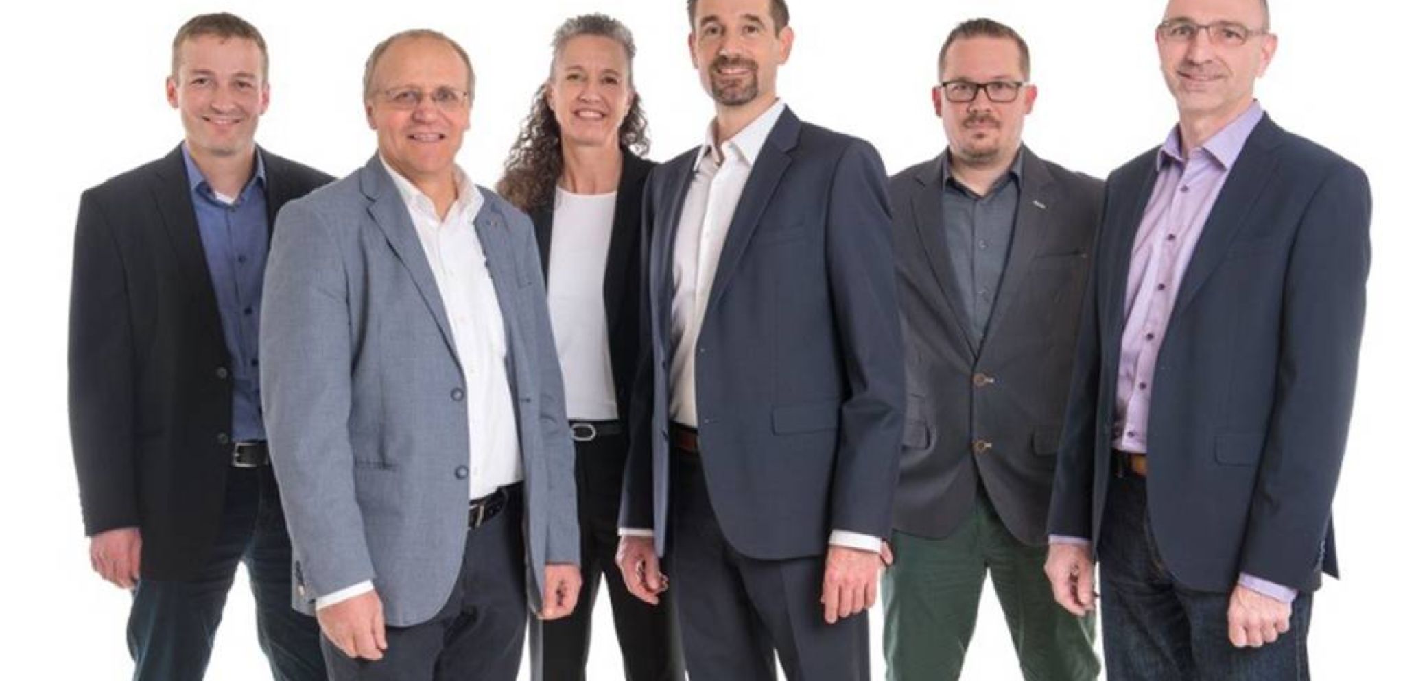 Das neue Führungsteam der Rudolf Geiser AG: Reto Sommer, Martin Bärtschi, Dagmar Bieri, Markus Jöhr, Sascha Brütsch und Thomas Kurt (v.l.n.r.). Bild: Rudolf Geiser AGN