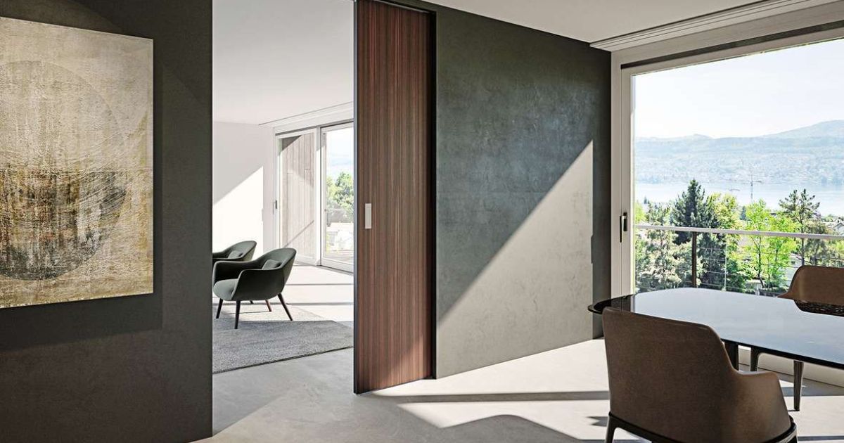 Zudem haben offene Türen der Familie «Hawa Junior» einen bündigen Wandabschluss, verschwinden also komplett in ihrem Parkraum. Auf Griffe und Fingerhülsen wird dank einer integrierten «Push-to-open-Mechanik» verzichtet.