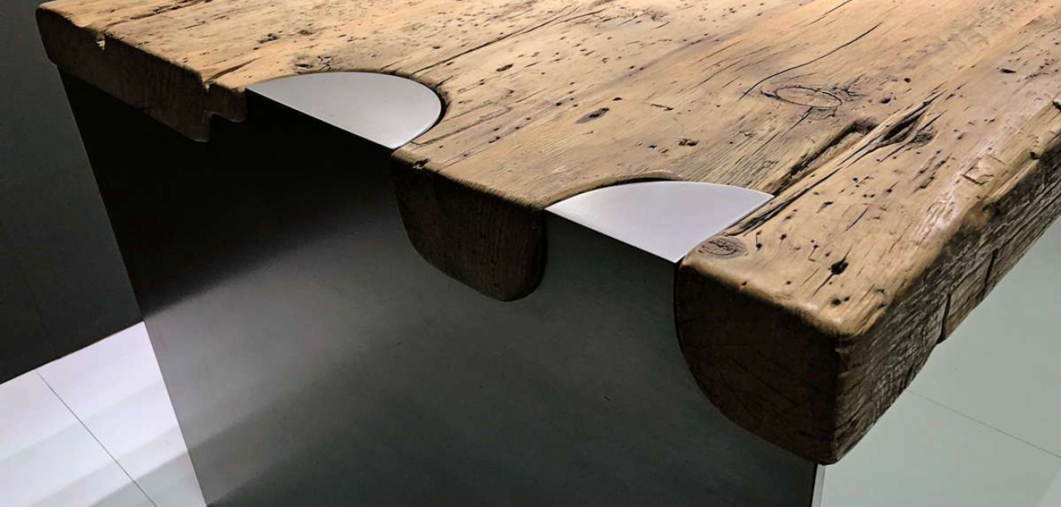 Metall ist dem Schreiner gut bekannt. Im Gastro- und Ladenbau wird viel mit CNS oder Aluminium gearbeitet. Bei Möbeln und Objekten spielt die Qualität der Verarbeitung eine zentrale Rolle. Einfache Bearbeitungen können spezialisierte Schreiner selbst ausführen. Sobald geschweisst, gebogen oder abgekantet werden muss, lohnt sich eine Fremdvergabe. So lassen sich mit einem Schlosser tolle Ergebnisse erzielen.