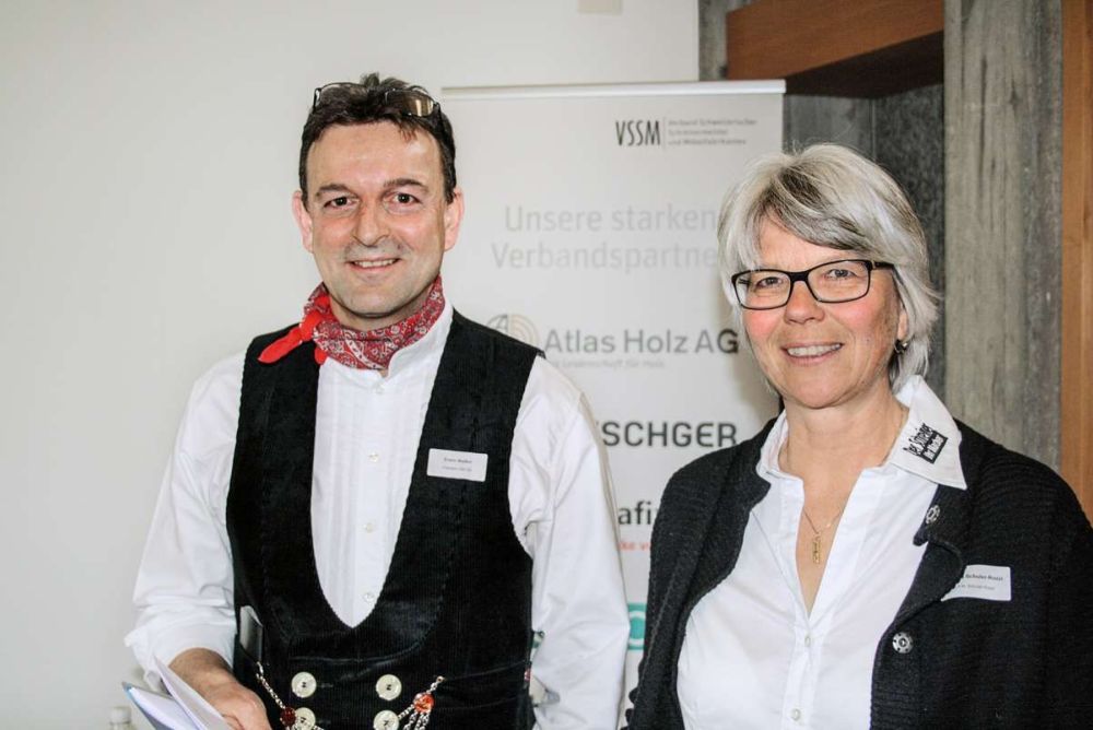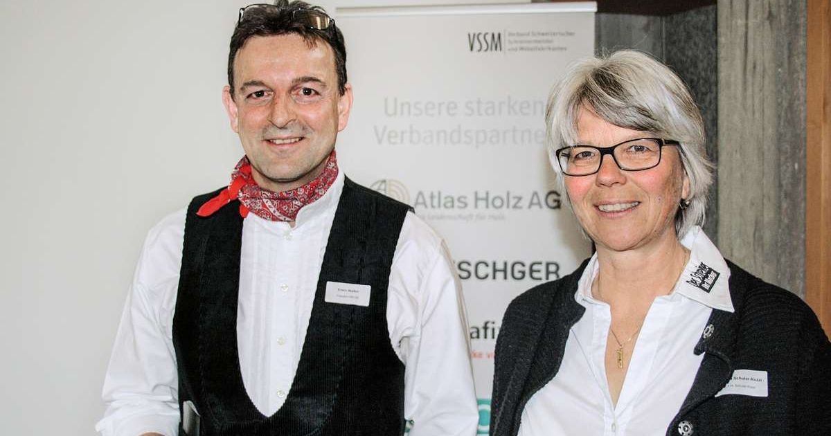 Gute Zusammenarbeit: Erwin Walker, Präsident der Bündner Holzbauer, und Barbara Schuler-Rozzi, Präsidentin der Bündner Schreiner. Bild: VSSM Graubünden