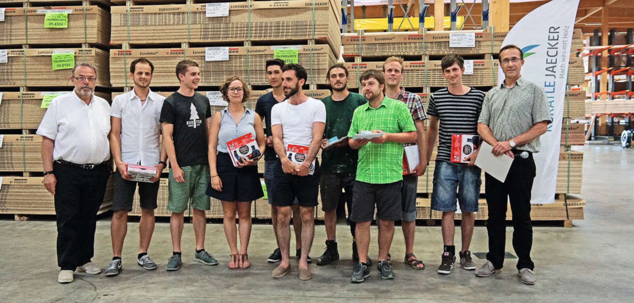 Die Absolventen der VSSM-Sektion Basel-Stadt ihrerseits hatten ihre offizielle Zeugnisübergabe an der Allgemeinen Gewerbeschule Basel-Stadt erst nach der Lehrabschlussfeier der Sektionen. Deshalb reisten sie direkt zur Feier nach Füllinsdorf. Dort wurden alle von René Hochuli, Präsident des Schreinermeisterverbandes Basel-Land, von Gaston Schweizer, Präsident der VSSM-Sektion Basel-Stadt, sowie von Marc Lischer von der Kuratle Jaecker AG begrüsst. Letzterer verschaffte den Teilnehmern einen Überblick über die Dimensionen der Holzwerkstoffhandelsfirma. Im Anschluss folgte das reich gedeckte Grillbuffet.