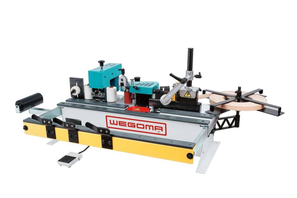 Die Kantenanleimgeräte der deutschen Wegoma-Virutex Connection GmbH sind kleine Alleskönner. Dies gilt sowohl bei Platten mit geraden Kanten wie auch bei solchen mit runden Freiformen. Das mobile Kantenanleimgerät PM5000 eignet sich aufgrund der einfachen Bedienung und der schnellen Einstellung insbesondere für die Bearbeitung kleiner Stückzahlen. Beleimt werden können die Werkstücke mit Kanten aus PVC, ABS, Melamin, Laminat oder Furnier, welche vorher auf die gewünschte Länge zugeschnitten worden sind. Das mobile Gerät ist ausgerüstet mit unterstützter Kantenzufuhr und elektronischer Drehzahlregelung. Es verfügt ausserdem über eine Temperaturregelung und eine präzise Steuerung der Klebstoffdosierung. Der Klebstoffbehälter und die Kantenführung sind mit Teflon beschichtet und einfach zu reinigen und instand zu halten. Doch das Besondere dieser handlichen Maschine ist deren Wandelbarkeit. Nur gerade drei Schrauben sind notwendig, um das mobile Kantenleimgerät mit dem passenden Arbeitstisch zu verbinden und dieses so in die stationäre Kompaktmaschine PM5000TA zu verwandeln.