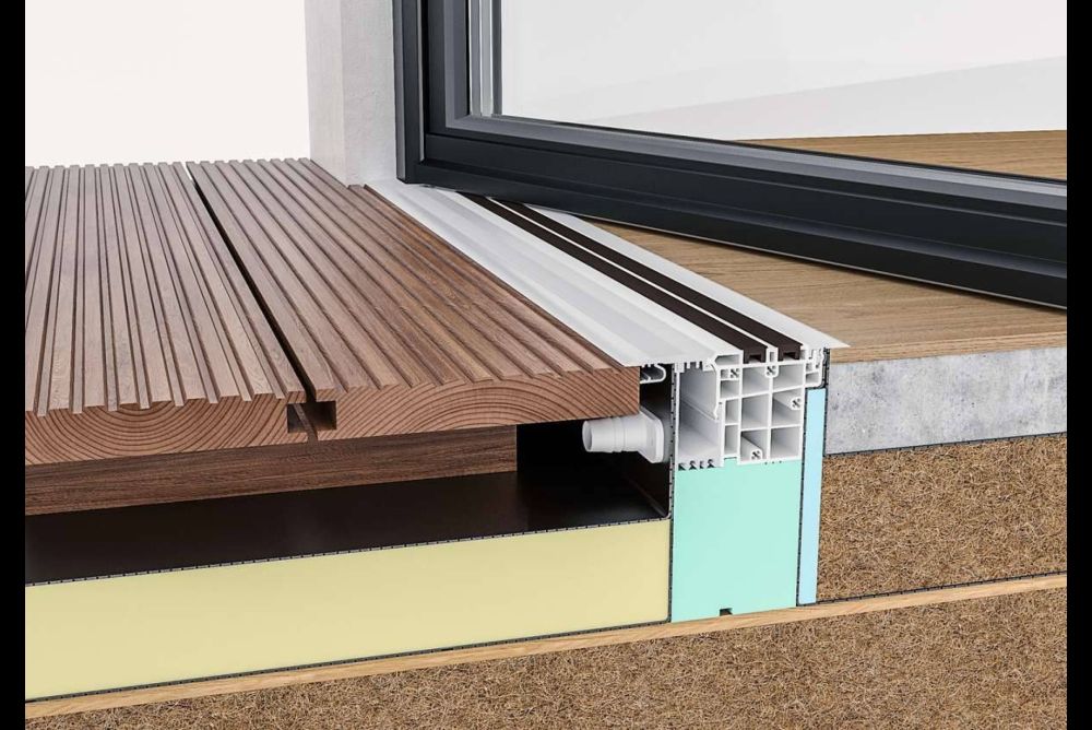 Was sich betreffend die Schwelle deutlich abzeichnet, wenn es um barrierefreie Durchgänge geht, ist: Zwischen Hauseingangs- und Fenstertüren gibt es absolut keinen Unterschied mehr. Entsprechend haben auch Haustürrahmen untere Auflagefriese, die nicht verfaulen können und eine sichere thermische Trennung garantieren.