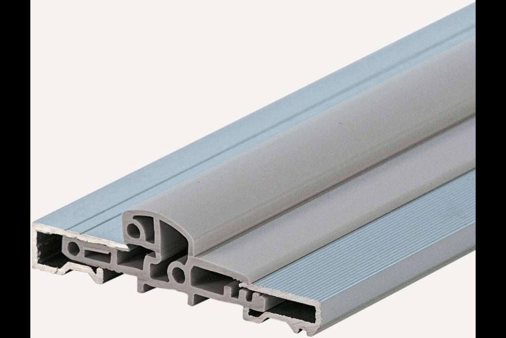 Die «Maco-Bodenschwelle Transit» von der Mayer & Co. Beschläge GmbH aus Salzburg in Österreich bietet eine ausgeprägte, thermische Trennung und die Möglichkeit von zwei Dichtungsebenen. Mit beidseitig ausziehbaren Elementen lässt sie sich in ihrer Breite stufenlos an die Erfordernisse anpassen. Die mehrstufige Profilform lässt verschiedene Anschlagsituationen mit Dichtungen zu und dürfte, mit der Gesamthöhe von 20 Millimetern, die Überfahrbarkeit auch mit kleineren Rädern einfach ermöglichen. Spezielle Anschlussteile vereinfachen die Verbindung zur Rahmenstirnkante oder zu festen Elementen.