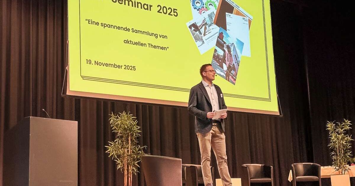 Nik Schöpfer moderierte das VST-Seminar 2025 und leitete die Podiumsdiskussion. Bild: Noah Gautschi