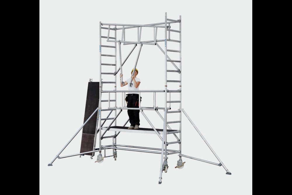 Die «ZAP»-Arbeitsplattformen von Zarges bieten Flexibilität. Vor allem aber bieten sie einen sicheren Stand bei der Arbeit auf einer grossen Plattform, die von einem Geländer umgeben ist. Das neue Fahrgerüst «Z600 S-PLUS» hat ein vorlaufendes Geländer und einen Plattformabstand von zwei Metern. Dadurch sind die Mitarbeiter sowohl beim Auf- als auch beim Abbau stets rundum gesichert. Auch bestehende Zarges-Fahrgerüste können mit dem vorlaufenden Geländer nachgerüstet und sicherer gemacht werden.