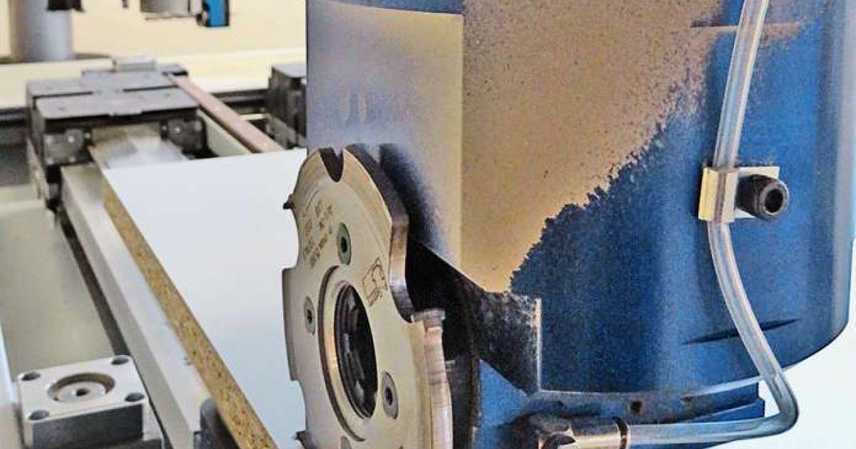 Im Vergleich zur Handmaschine «Lamello Zeta P2» müssen bei der Einbringung der P-System-Nut mögliche Plattentoleranzen bei der maschinellen Bearbeitung mit einem CNC-Aggregat ausgeglichen werden. Insbesondere beim «Tenso P-14» ist eine exakte Nuttiefe notwendig, um eine immer gleiche Spannkraft der Verbinder zu garantieren. Das «Floating H-T»-Tastaggregat von Benz für das vertikale Nutenfräsen ist mit einer speziellen Tastkufe ausgestattet, die genau diese Unterschiede in der Plattenstärke ausgleicht. Die Höhe der Tastkufe wird von Benz ab Werk exakt auf den vorgesehenen Verbinder und das Werkzeug eingestellt. So kann das Aggregat sofort vom Anwender in Betrieb genommen werden und garantiert eine exakte Nuttiefe ab Werkstück 1.