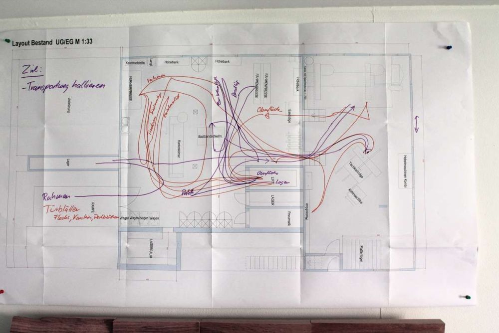 Experte Stephan Zürcher analysiert diesen Wandel: «Der erreichte Wechsel der Fehlerkultur basiert auf dem Vertrauen der Mitarbeitenden in die Unternehmensleitung und auf gemeinsam erlebten positiven Verbesserungen. Dieses Vertrauen haben wir in den Workshops mit der Optimierung der Arbeitsplätze aufgebaut. Natürlich war zu Beginn die Skepsis gross, als wir das erste Spaghettidiagramm gemacht haben, um die Verschwendungen aufzuzeigen. Doch die Resultate und die Arbeitserleichterungen waren für die Wälchli-Mitarbeitenden überzeugend. Aus dieser Sicherheit heraus wurden die Prozesse und das Layout in der Schreinerei gemeinsam überarbeitet. Entscheidend für den Erfolg des Projektes war, dass die Geschäftsleitung sofort startete, die vielen Verbesserungsideen der Mitarbeitenden umzusetzen und die ‹Schuldzuweisungen bei Fehlern› zu stoppen.»