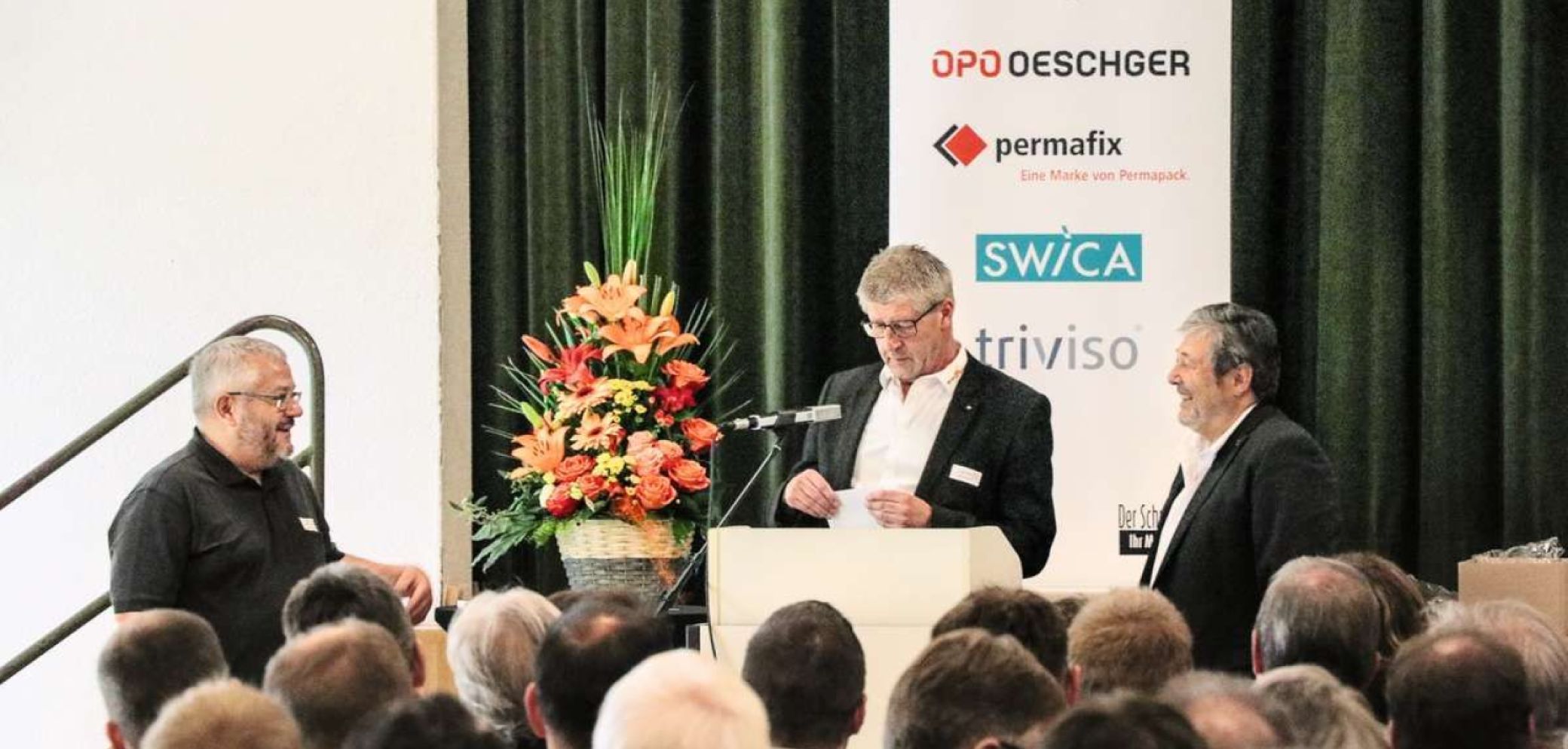 Toni Lenz, Präsident der Berner KMU, wagte einen Blick 100 Jahre zurück. Bestehend aus 14 Regionalsektionen, wurde im Jahr 1919 der Kantonal Bernische Schreinermeister Verband (KBSV) gegründet. Als Auszeichnung für die lange und starke Verbandsorganisation der Schreinermeister im Kanton Bern überreichte Lenz den VSSM-Sektionen Kanton Bern und Berner Oberland je ein Präsent.