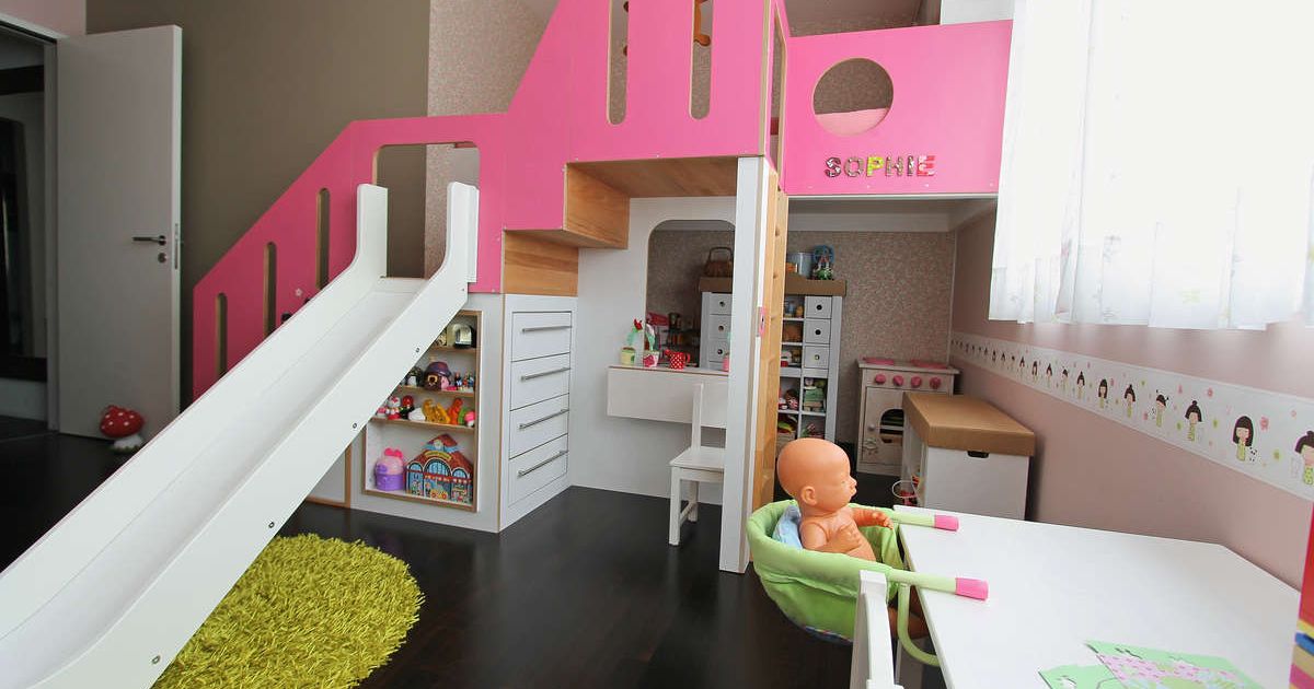 Bild: Schreinerei Kym Individuelles Raumkonzept, das «mitwächst»: Die Möbel können vom Kinder- bis zum Teenageralter variiert werden. Zum Beispiel Rutsche abmontieren, anderes Geländer aufsetzen.