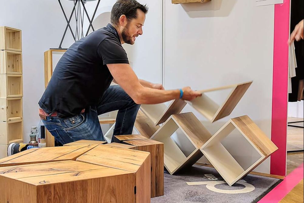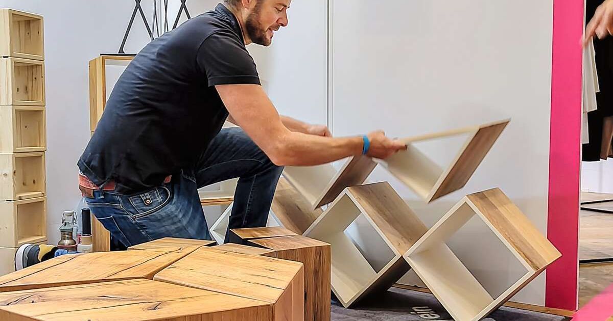 Drei Tage lang in Bewegung: Patrick Kurmann führt seine auf- und einfaltbaren Möbel vor, die sich vielfältig verwandeln lassen. Bild: Christian Härtel