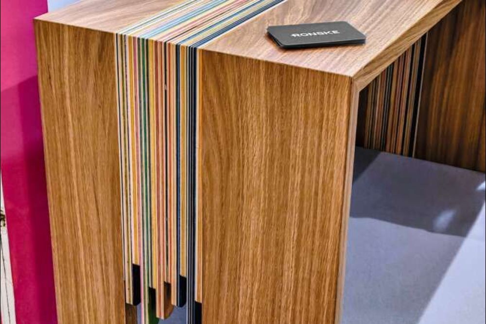 Als Nichtskater staunt man nicht schlecht, wie viel Material zusammenkommt. Ein engagierter Hobbyskater verbrauche pro Monat ein Board, dann sei es zerschlissen, sagt Gaspar. Er schenkt den ausgedienten Brettern ein zweites und deutlich längeres Leben. In Verbindung mit Massivholz verarbeitet er die gefärbten Lagenhölzer der Boards zu Möbeln unter dem Label «Ronske». Ein Upcycling, das ankommt. Er ermuntert alle Board-Begeisterten, ihre alten Bretter nicht zu entsorgen, sondern zu sammeln. Gaspar macht dann auch auf Kundenwunsch das individuelle Stück daraus. Sind die Boards zu kurz für eine Tischplatte, dann stösst er die farbenfrohen Streifen einfach stumpf zusammen. Die Farben sollen nur die Funktion haben, die Schichten sichtbar zu machen, weil es für die Boards ein Qualitätskriterium sei. Seit 2018 experimentiert Gaspar mit den Boards und ihrer Umwandlung zu etwas, was Dauer und Wert besitzt. Anerkennend muss man sagen, dass die Möbel perfekt gearbeitet sind, zumal wenn man bedenkt, dass Gaspar sich den Umgang mit Holz erst autodidaktisch aneignen musste.