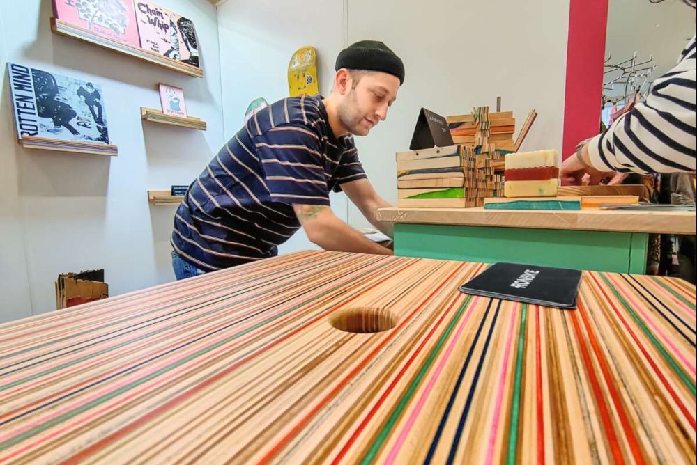 Um Bewegung geht es auch bei den Möbeln von Aron Gaspar. Denn der Skater macht Möbel mit ausgedienten Boards. «Ich sammle die Boards und arbeite sie in meine Möbel mit ein», erklärt der gelernte Maler aus Luterbach SO.
