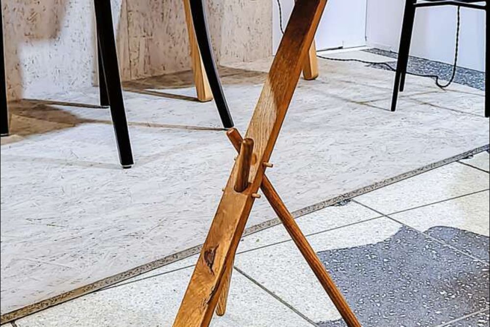 «Triangle 001» von Schreiner und Industriedesigner Flavio Zehnder aus Ettenhausen TG ist ein Beistelltisch, der sich über einen einfachen Mechanismus definiert. Dabei bilden sechs Holzelemente eine stabile Konstruktion, die sich jederzeit von Hand vollständig zerlegen lässt. So werden die beiden Rundstäbe als Beine durch den zentralen Träger geführt und mit kleineren Rundstäben fixiert. Die konische Tischplatte wird vom zentralen Tragholz durchdrungen und hält, indem sie verkantet, durch ihr Eigengewicht. Ein leichtes Anheben am Ende der Platte genügt, und schon lässt sie sich in der Höhe stufenlos verstellen.