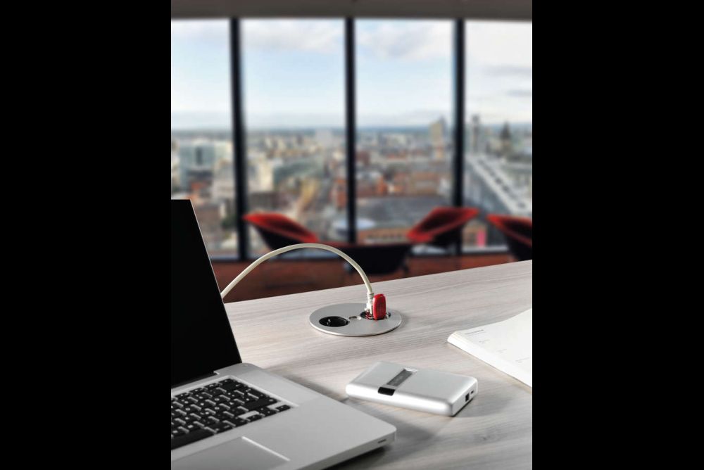 www.eku.chDurch Betätigung des Knopfes in der Mitte und das Drehen der Abdeckung werden die Verbindungsmöglichkeiten freigegeben. Bei Nichtgebrauch verschwinden die Steckdosen unter der Abdeckung. Für die Küchensteckdosen oder den Einsatz mit anderer Bestückung im Büro konzipiert, ist die Steckdoseneinheit «Twist» von Bachmann nicht nur formal etwas anderes. Mit einer Einbautiefe von etwa 40 mm kann die Station auch oberhalb von Schubkästen montiert werden.