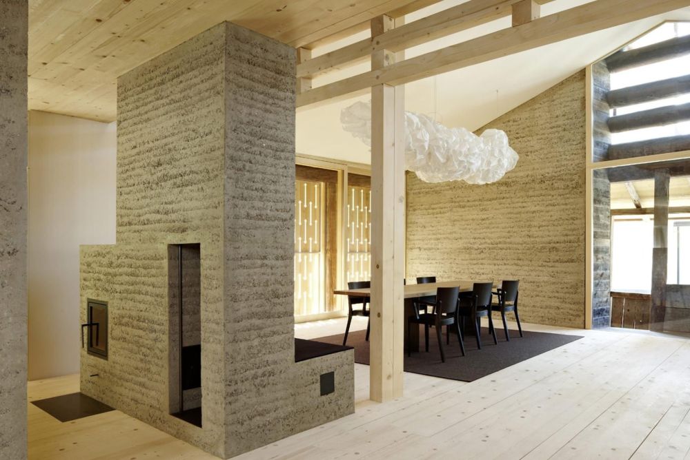 Ein Pavillon aus Holz-Stroh-Lehm-Modulen wiederspiegelte an der Messe Bau + Energie die zeitgemässe Bauweise mit Lehm. Bild: Messe Bau + Energie