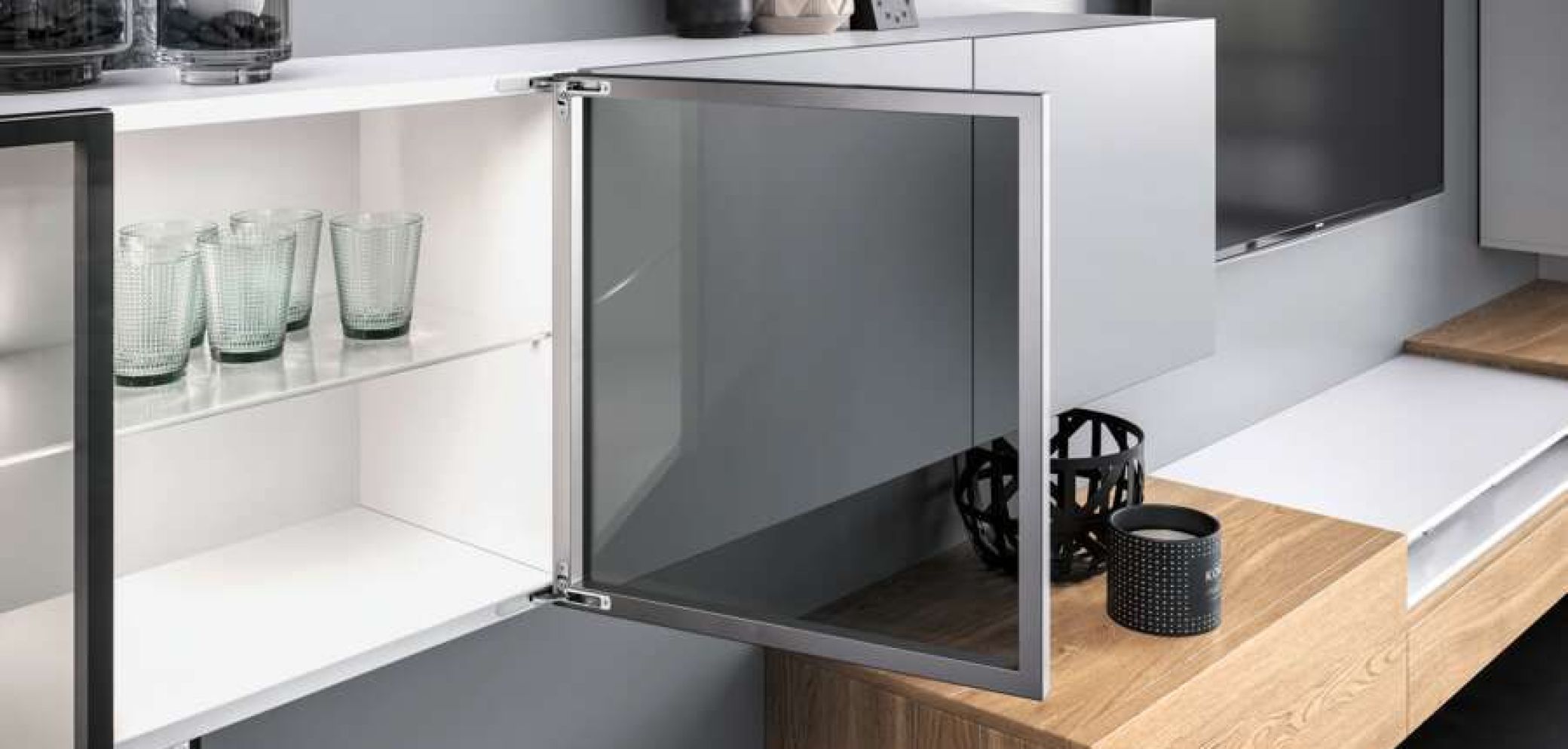 Das Möbelband Tiomos H von Grass wird sowohl in der Front als auch im Deckel und im Boden des Korpus eingelassen. Bild: Grass