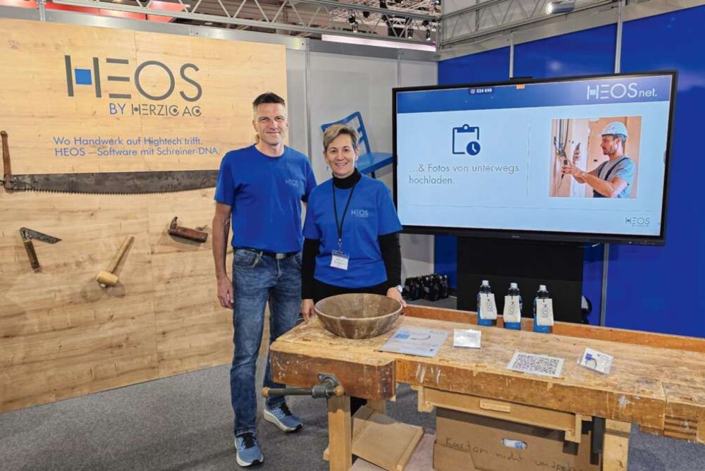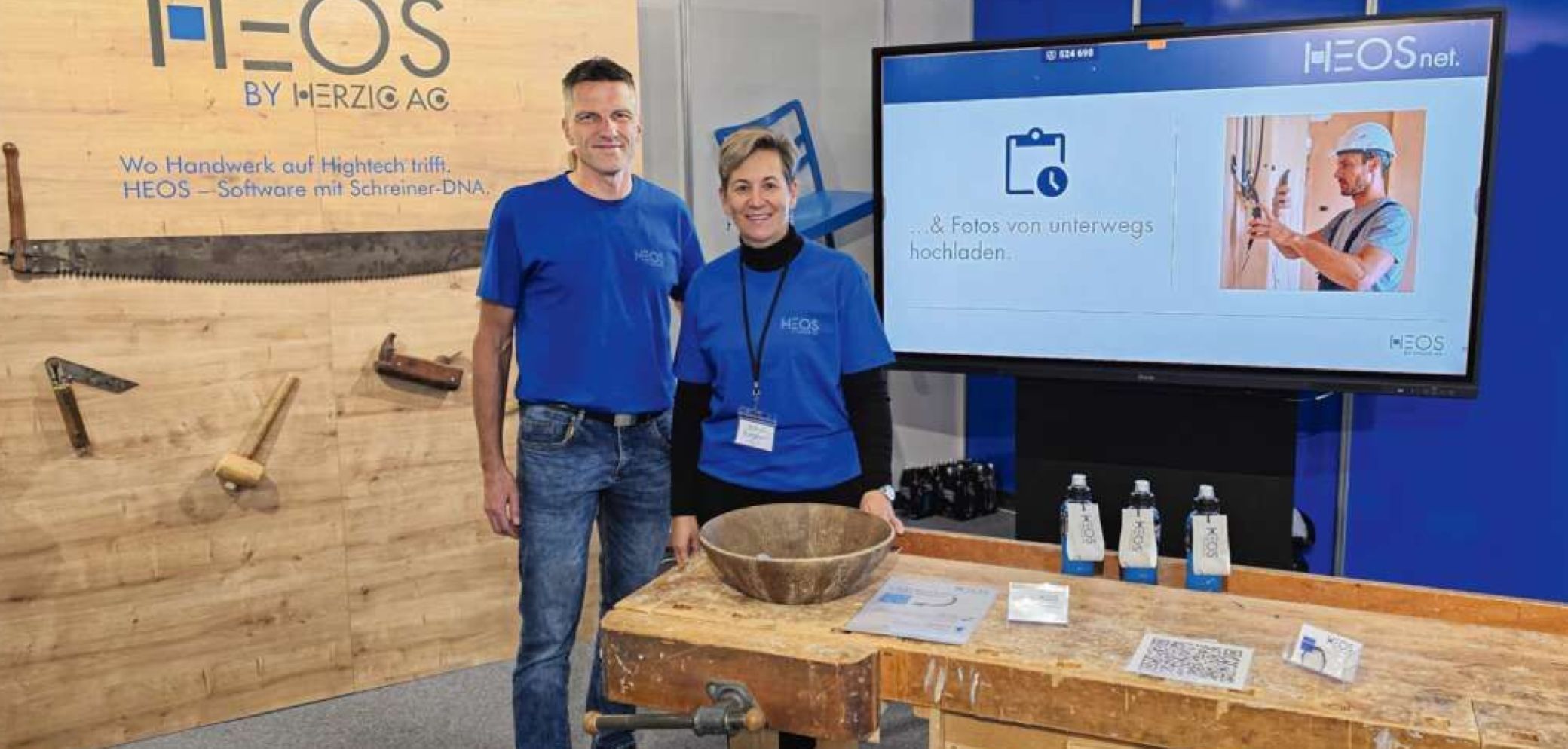 Gleich am Eingang der Messe war die Herzig AG Raumdesign mit ihrer Branchensoftware «Heos» perfekt positioniert. Die Einrichtung des Standes widerspiegelte das gelebte Motto «Wo Handwerk auf Hightech trifft». Seit über elf Jahren ist die «Software mit Schreiner-DNA» nun bereits auf dem Markt, hat sich seither stetig den veränderten Anforderungen angepasst, aber immer den Fokus auf den Bedürfnissen der Schreinereien behalten.
