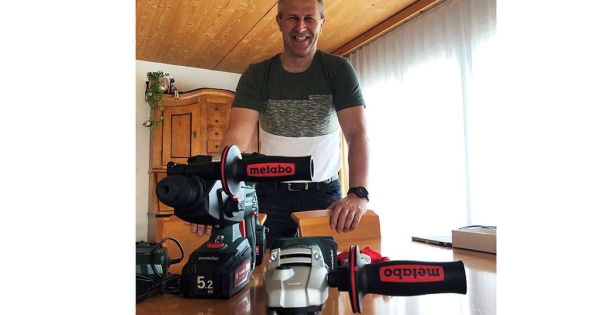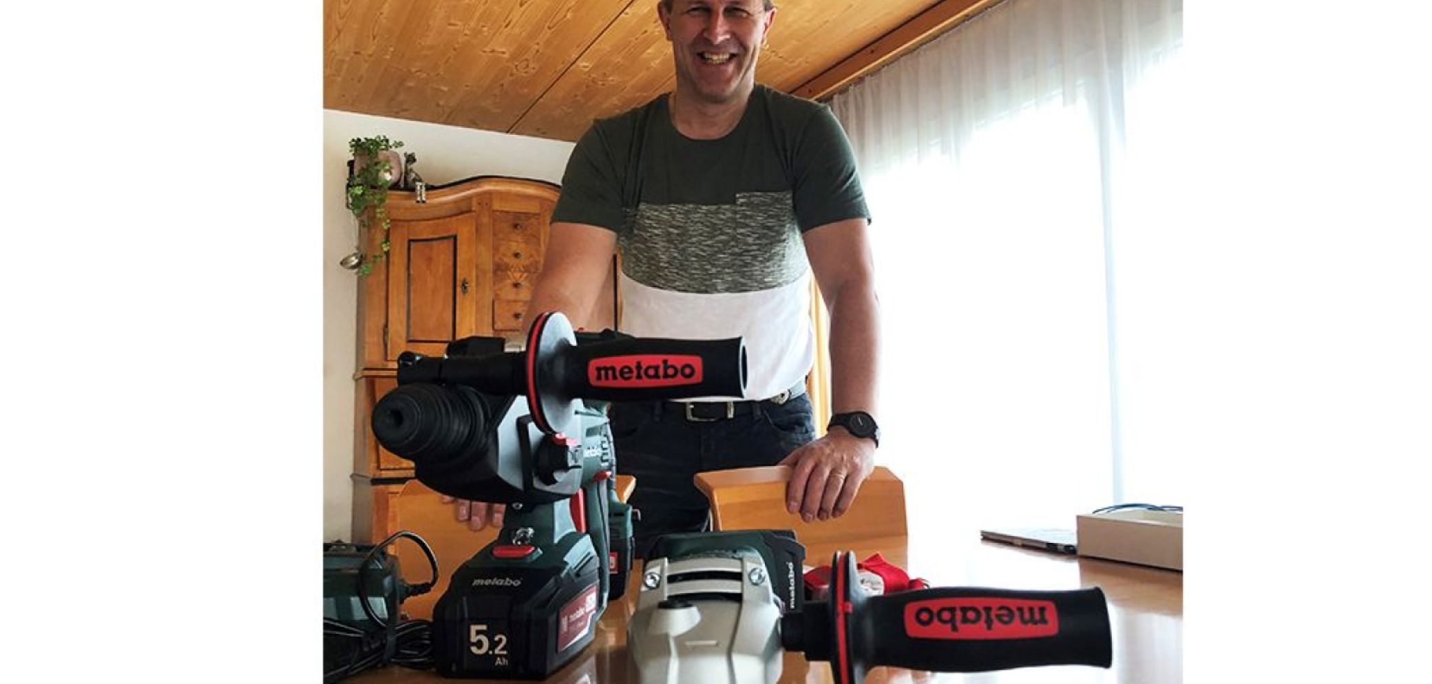 Der gelernte Schreiner weiss schon ganz genau wofür er die Metabo Maschinen verwenden wird. Bild: Marc Briand