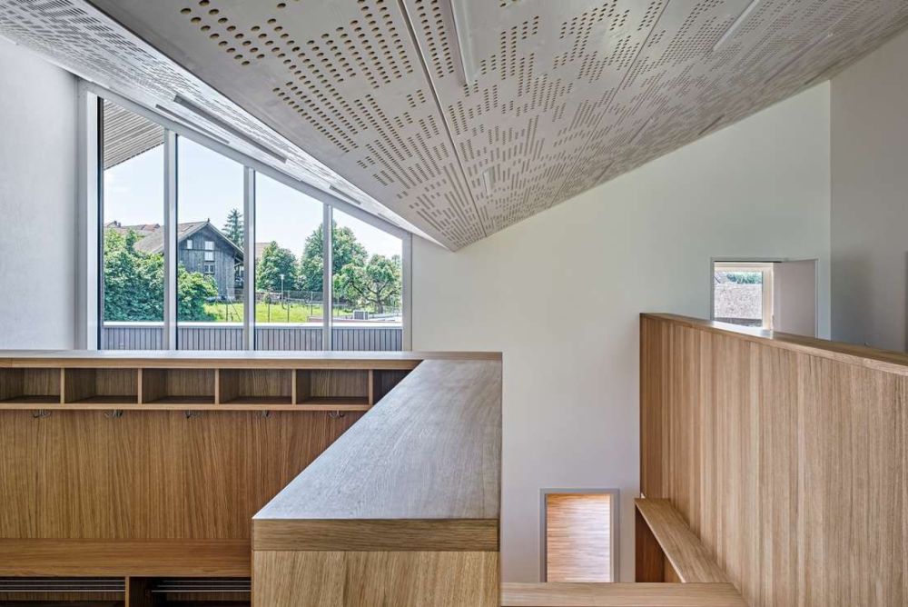 «Es war eine gut abgestimmte Zusammenarbeit mit dem Lüftungstechniker, dem Elektriker und dem Bodenleger nötig», sagt Projektleiter Morger. Die Innenausbauarbeiten haben ihm Freude bereitet, kommen solche «recht markanten Garderobenteile» doch nicht alle Tage vor. Trotz seiner Originalität bot der Entwurf ausserdem die Möglichkeit, Kosteneinsparungen vorzunehmen, ohne das Konzept aufzugeben. «Dank eines guten Kostenmanagements konnte sogar mit Minderausgaben abgeschlossen werden», bilanziert Gemeinderätin Beatrice Sommerauer zufrieden.