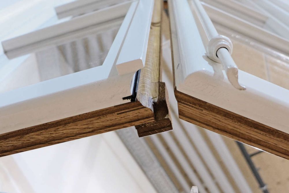 Der Umstand, dass die verlangten Fischbänder zwar sehr schön, aber nicht einstellbar sind, erforderte viel Präzision sowie auch eine verdrehungsfreie Flügelkonstruktion. Absolut präzise musste auch die Fenstermontage ausgeführt werden, damit alle Funktionen wirksam sind und langfristig beständig bleiben.