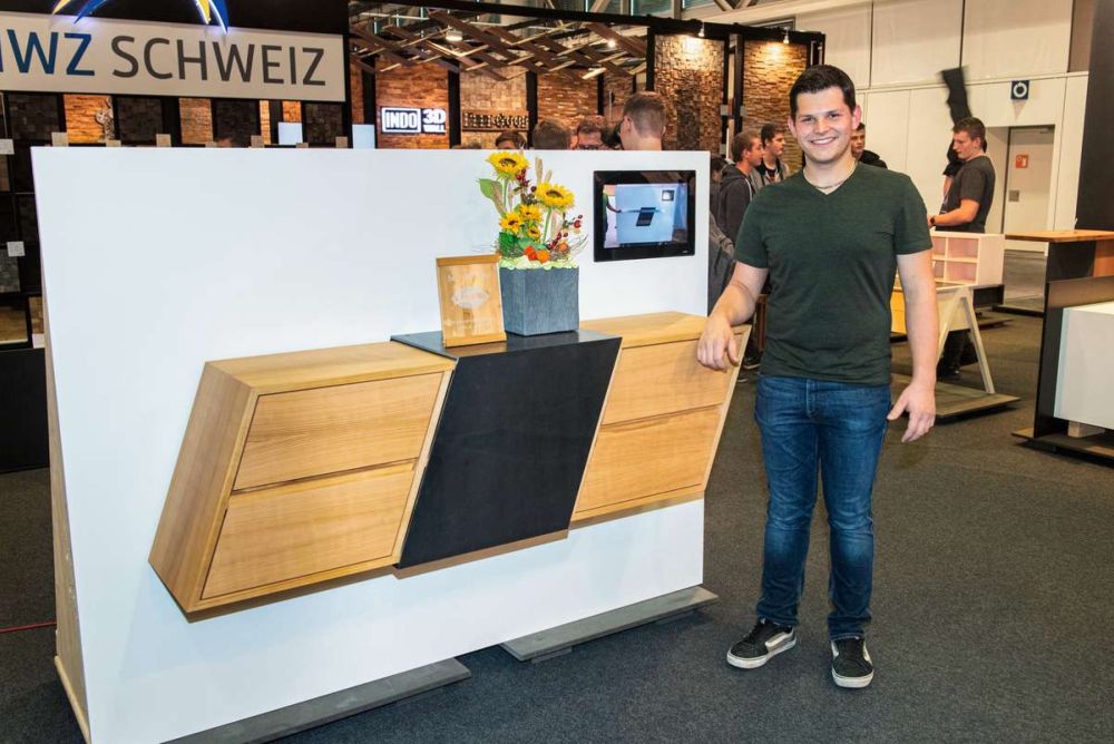 Eine Expertenjury hat den Opo-Oeschger-Beschlagpreis an Nikola Dukanovic vergeben. Er hat eine Kommode aus Nussbaumholz hergestellt. «Auf Instagram habe ich ein ähnliches Möbel gesehen und wollte selber eines bauen», erzählt der 19-Jährige aus Lichtensteig SG. Insgesamt hat er zweieinhalb Jahre investiert. Im vierten Lehrjahr hat er das Möbel hergestellt. «Es ist ein zeitloses Design und huldigt dem Jugendstil.» Dukanovic hat eine Reise an die Möbelmesse in Mailand gewonnen. Der Lamello-Talentpreis ging an Dario Guler aus Klosters GR für sein verschiebbares Sideboard aus Kirschbaum. «Ich wusste zuerst, dass das Möbel die Form eines Parallelogramms haben soll», erzählte der 19-Jährige. Er hat 2000 Franken gewonnen.