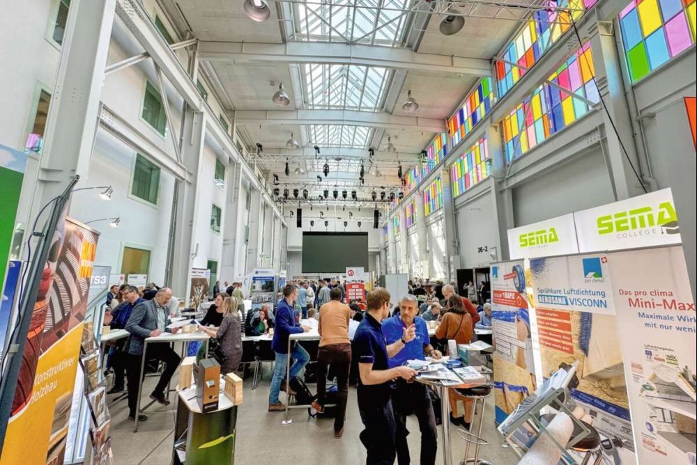 Nach dem kurzen wirtschaftlichen Exkurs folgten die eigentlichen Vortragsreihen, welche die über 300 angemeldeten Fachleute gespannt verfolgten. Unter anderem wurden Themen wie modulares Bauen, Roboter für den Fassadenbau, Tragwerksysteme oder Hochhausbau mit Holz präsentiert. Die Zeit zwischen den Vortragsreihen nutzten die Teilnehmenden für den Austausch mit anderen Teilnehmern und den 44 Ausstellern, die ihre Produkte für den Holzbau präsentierten.