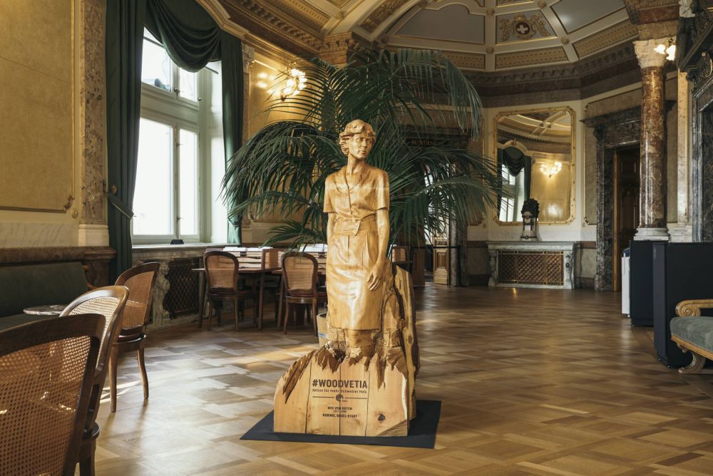 Woodvetia. Zur Frühlingssession in Bern tummeln sich spezielle Gäste unter der Bundeshauskuppel. Neben den Parlamentarierinnen und Parlamentarier trifft man bis zum 28. April im Bundeshaus auch 20 Schweizer Persönlichkeiten aus Holz.