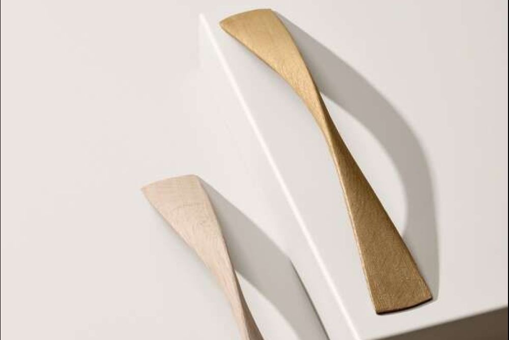 Als besonderer Hingucker findet sich etwa der Möbelgriff «Twist» im Sortiment von Furnipart (im Bild rechts). Der Name ist bei dem Griff aus Eiche Programm, denn die Form entspricht einer um 180 Grad verdrehten Leiste. Der Griff ist sowohl lackiert als auch unbehandelt und mit den Lochabständen 224 und 320 mm erhältlich.