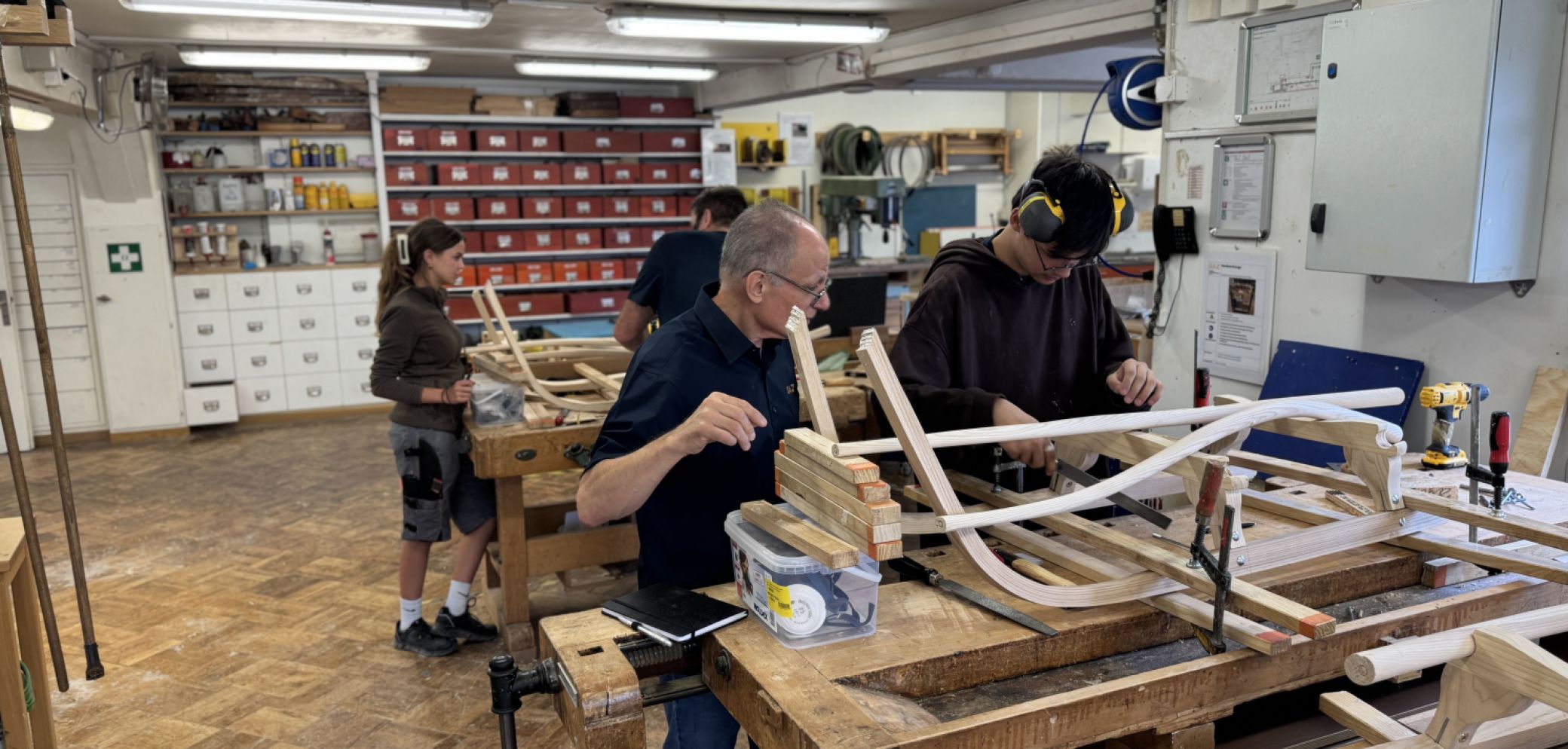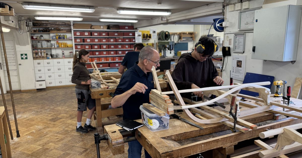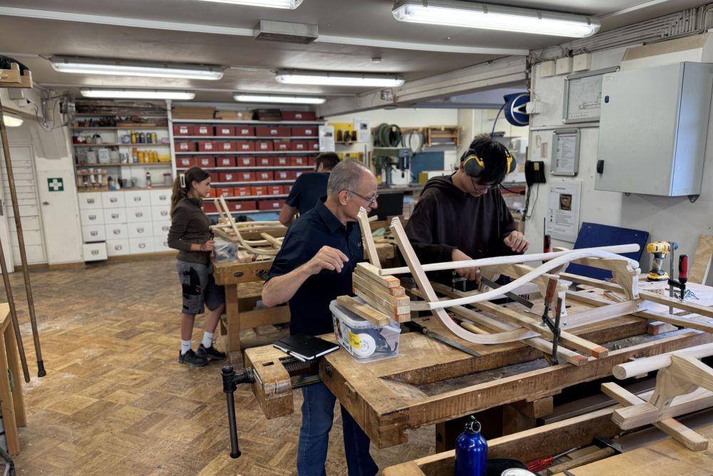 Im SAZ läuft der Betrieb zunächst weiter. Markus Bosshard (l.) arbeitet mit Lernenden an Schlitten. Bild: Michi Läuchli