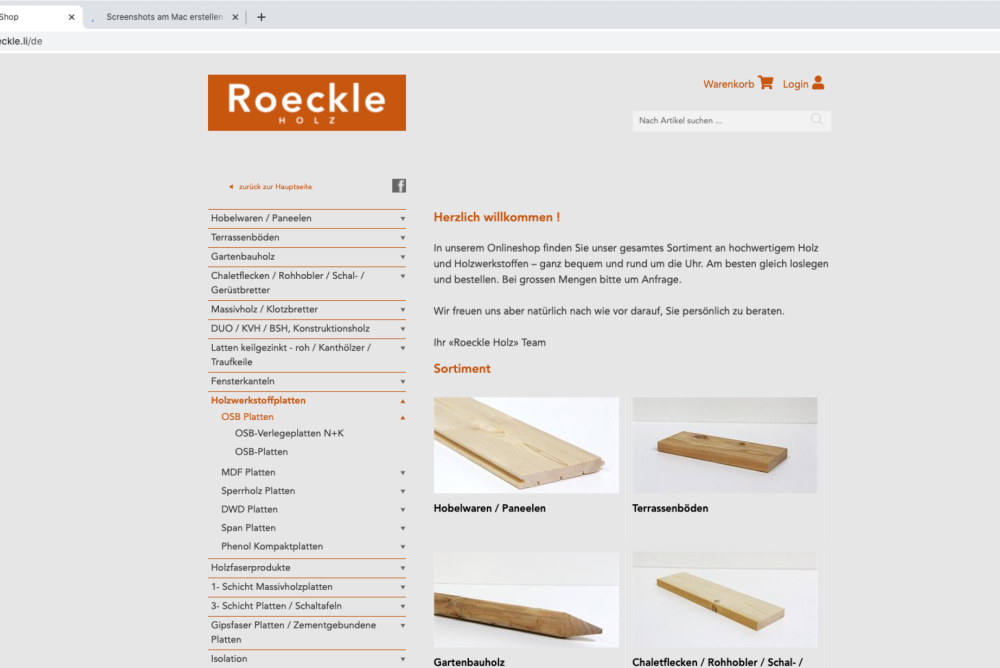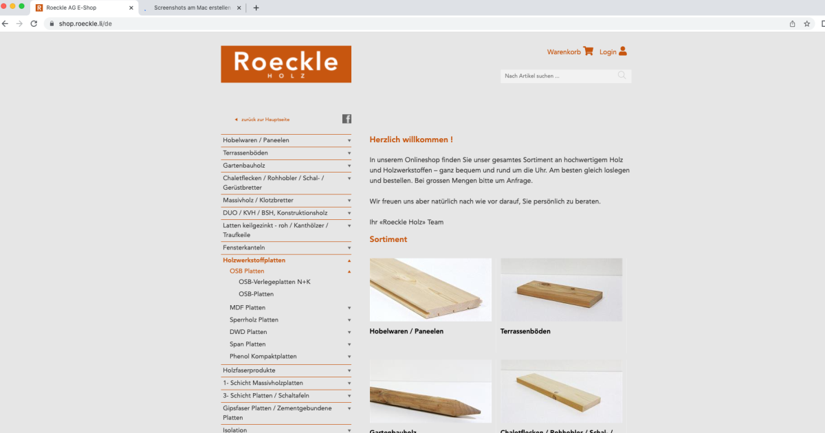 Webshop der Woche. In der sechsten Generation führt die Familie Roeckle in Vaduz (FL) ein Holzhandelsunternehmen. Ihr Angebot vom rohen Brett bis zum Parkett verkauft die Firma auch über einen Webshop.