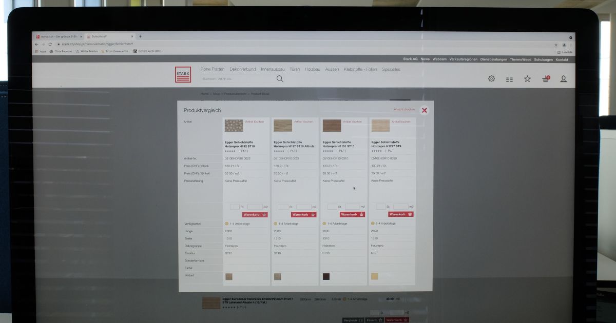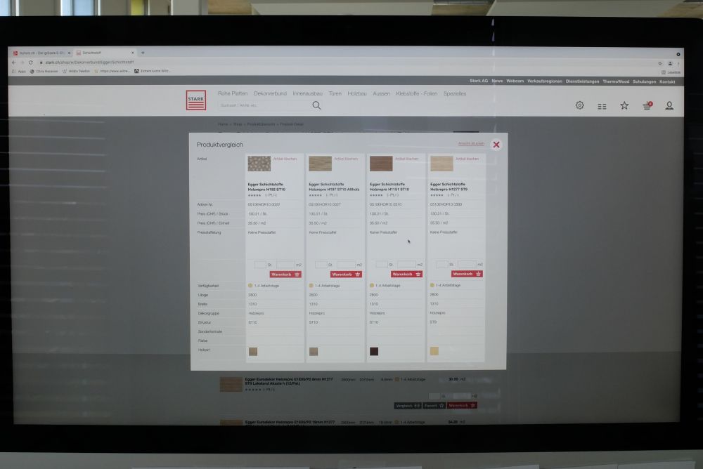 Gleichartige Produkte in unterschiedlichen Ausführungen kann der Kunde auf myholz.ch gleichzeitig anzeigen lassen und dann das passende auswählen. Bild: Stefan Hilzinger