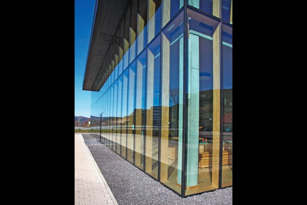 Bereits im Jahr 2012 realisiert: der Firmen-neubau des Fenster-herstellers Gegg als Holzbau im Holz-Glas-Verklebungssystem. Bild: Jörg Pfäffinger