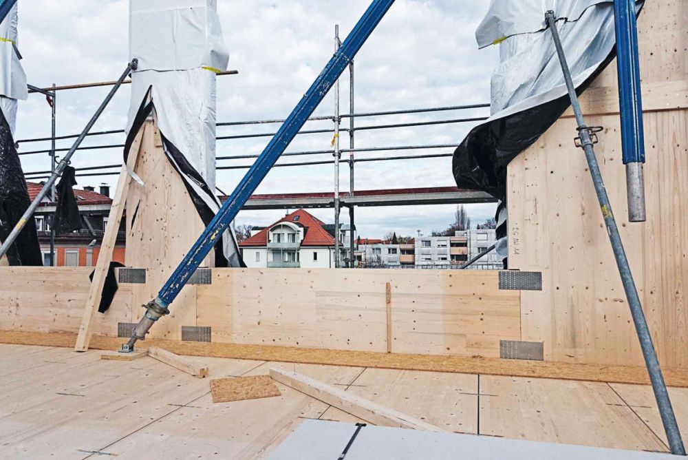 Verdichtung. Wo in innerstädtischen Quartieren der Wohnbedarf gross und der Platz knapp ist, wird mit Aufstockungen nachverdichtet. Weil der Bestand oft nicht für weitere Belastungen ausgelegt ist, kommt vielfach nur eine Leichtbauweise in Holz in Frage.